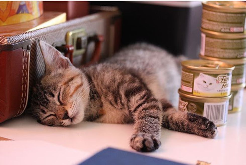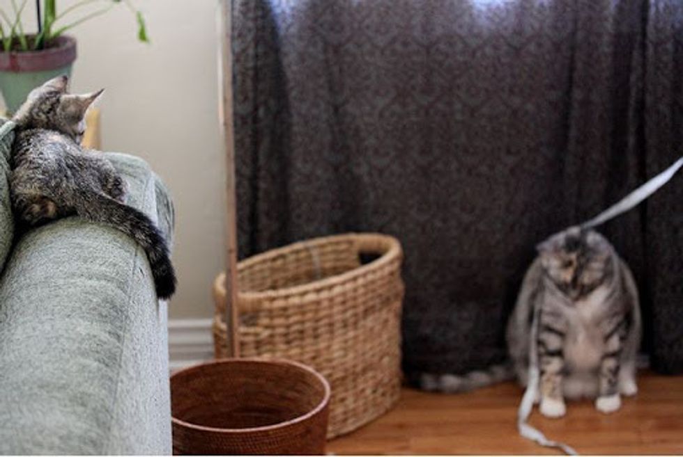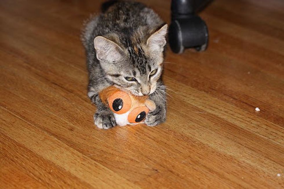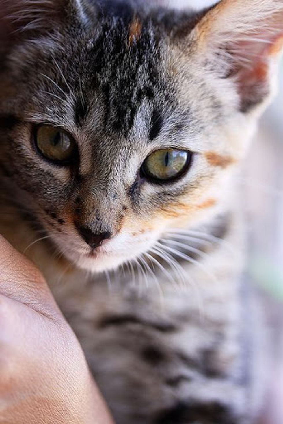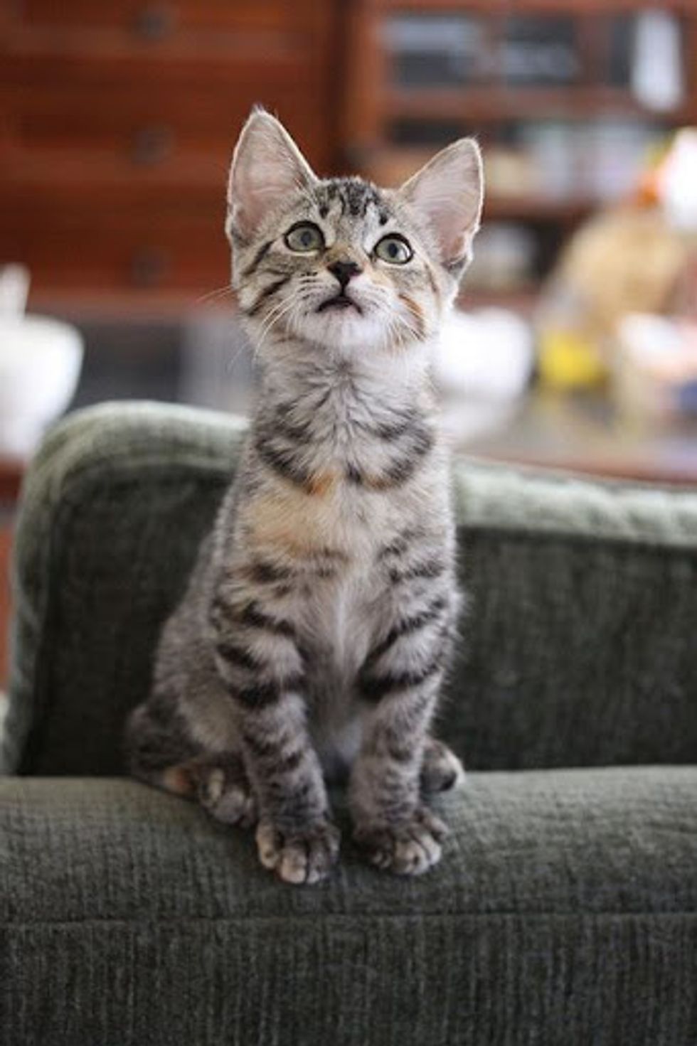 Lola is a 10 week old rescue. My husband and I were at PetCo to buy litter for our two 4 year old cats and a local a rescue group was there for adoption day. We decided "just to look." As soon as my husband held Lola he knew that he couldn't leave her. She was purring the instant he picked her up and climbed up to nuzzle his face.
