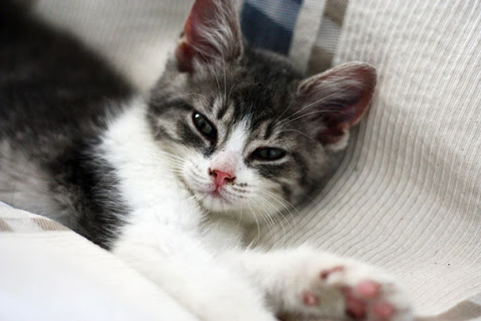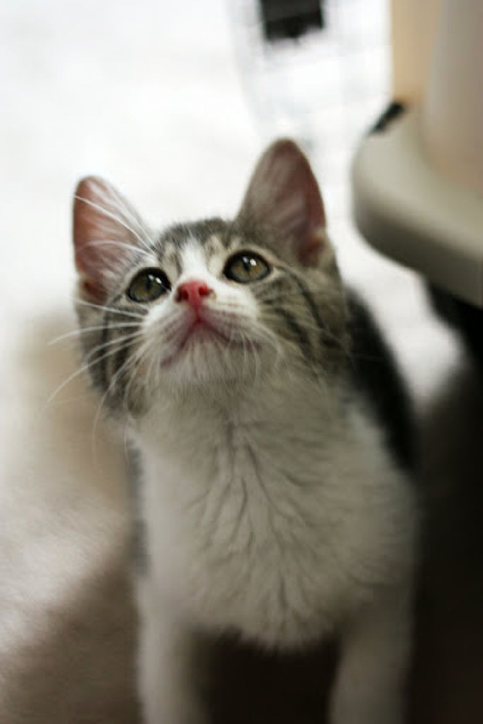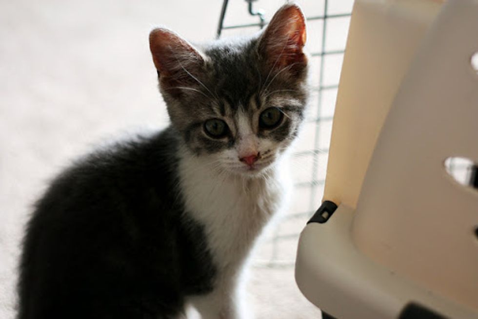 Lola is 10 weeks old, and we have had her for a week and a half. Last year, just after Christmas, our local animal shelter burned down, so at the moment the shelter is in a very small warehouse unit. A few weeks ago there was an article in the paper about how overcrowded the shelter was, and how they were closed to all new animals, and it made me so sad. So last weekend we were out at the pet store buying cat food, and they had an adoption fair, and we went over to see. They had two kittens and the humane society ladies were trying to talk us into adopting them both so as not to split them up, but we already have 2 cats and didn't think we could deal with 4, so we left. But we were so caught up in kitten fever that we decided to swing by the humane society building and see if they had any kittens. They had one, and 2 minutes later I was filling out the forms.