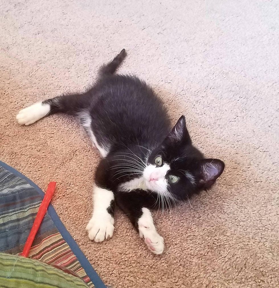 A kitten's incessant cries caught the attention of a family eight months ago. This is the difference love can make!