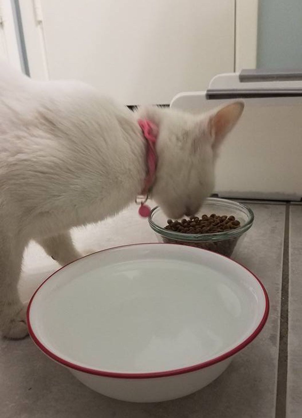 "I briefly left work to bring her home where I fed her kitten food and water. She ate that entire bowl while I sat there, poor thing was so hungry. Once I had peace of mind about her situation, I returned to work and posted on social media," she said.