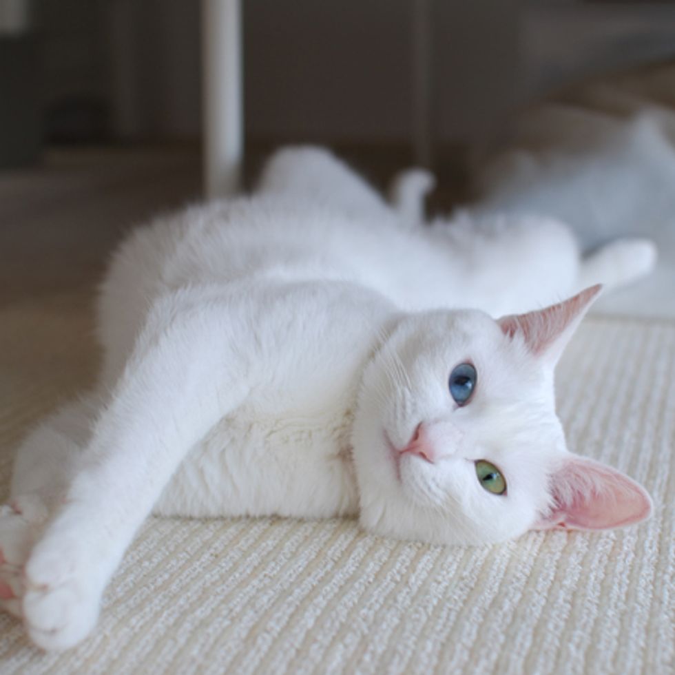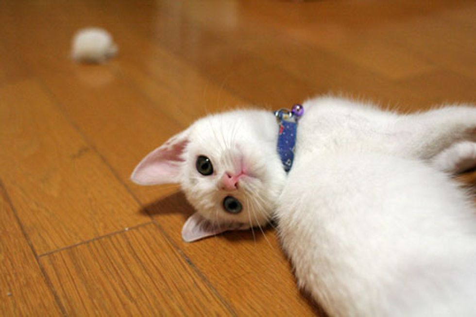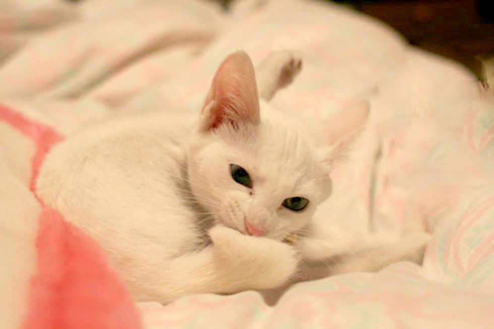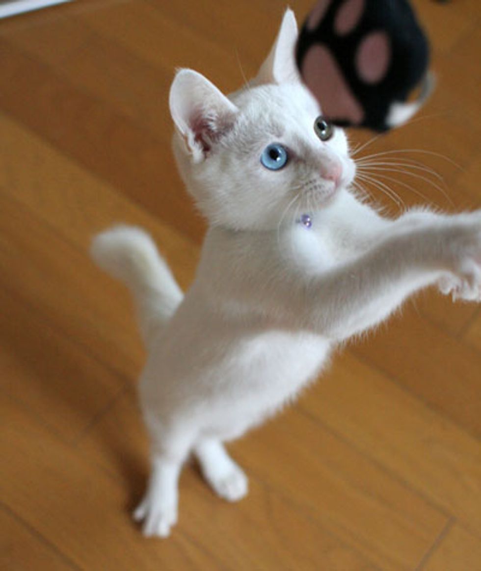 Akiho is a beautiful white kitty who was rescued back in the fall of 2008. She was very scaredy when she was found and kept hiding in a spot after she arrived in her foster home.