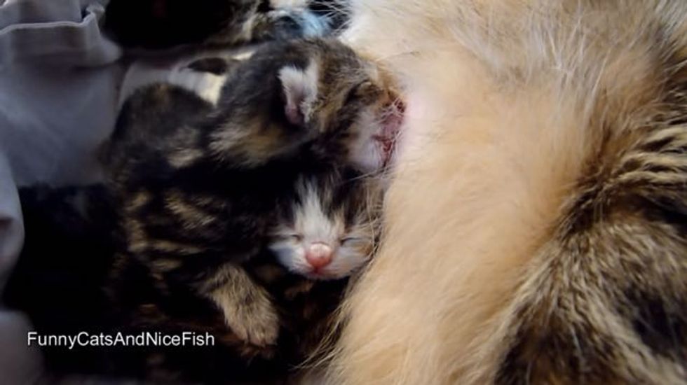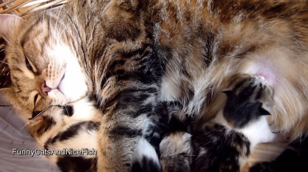 Coco the cat mama loves her kittens, all seven of them, and she showers them with lots of hugs. This shows sweet moments of motherly love and the care and affection that goes into being a cat mama.