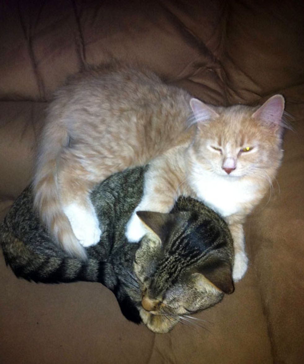 Today Fedor has become Lucky's protective brother. And Lucky thinks he is the happiest kitty in the world.