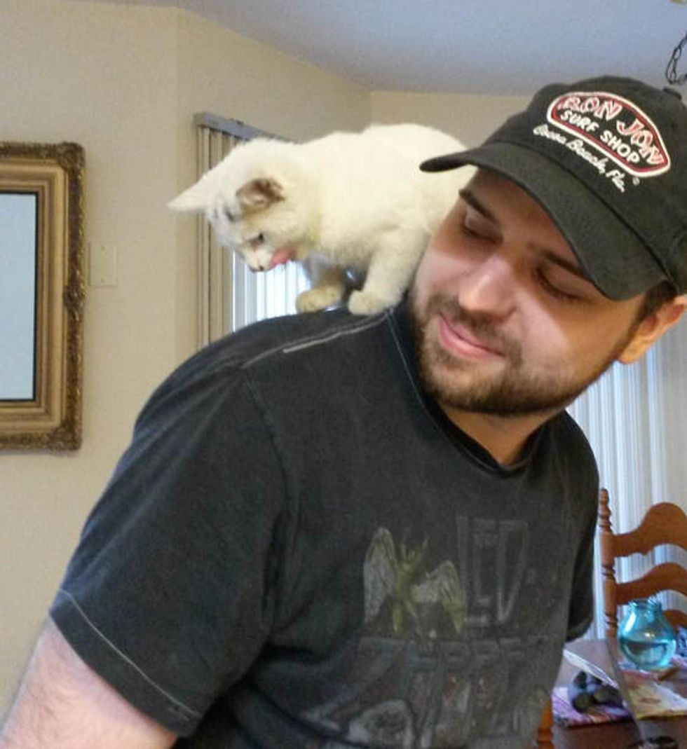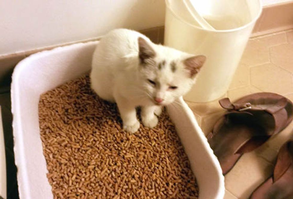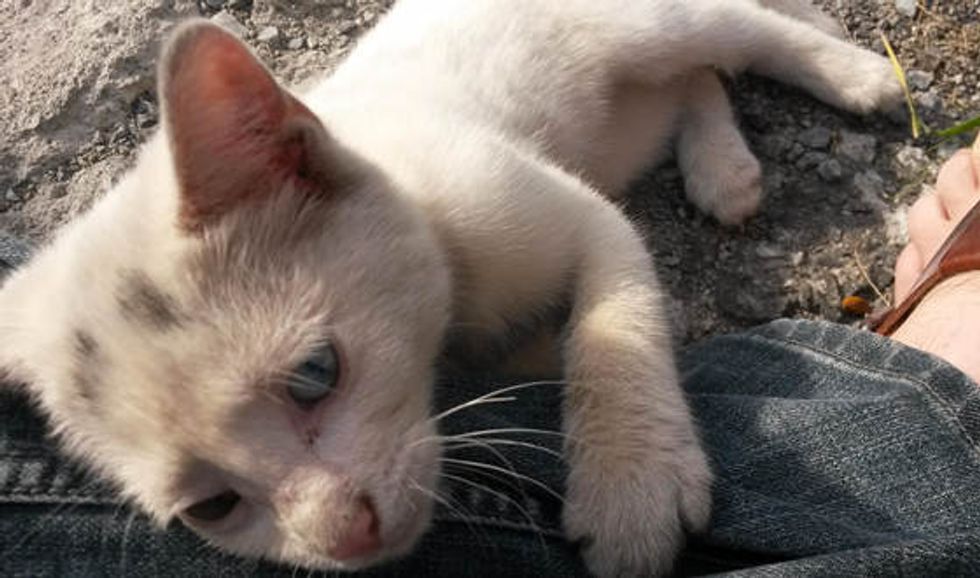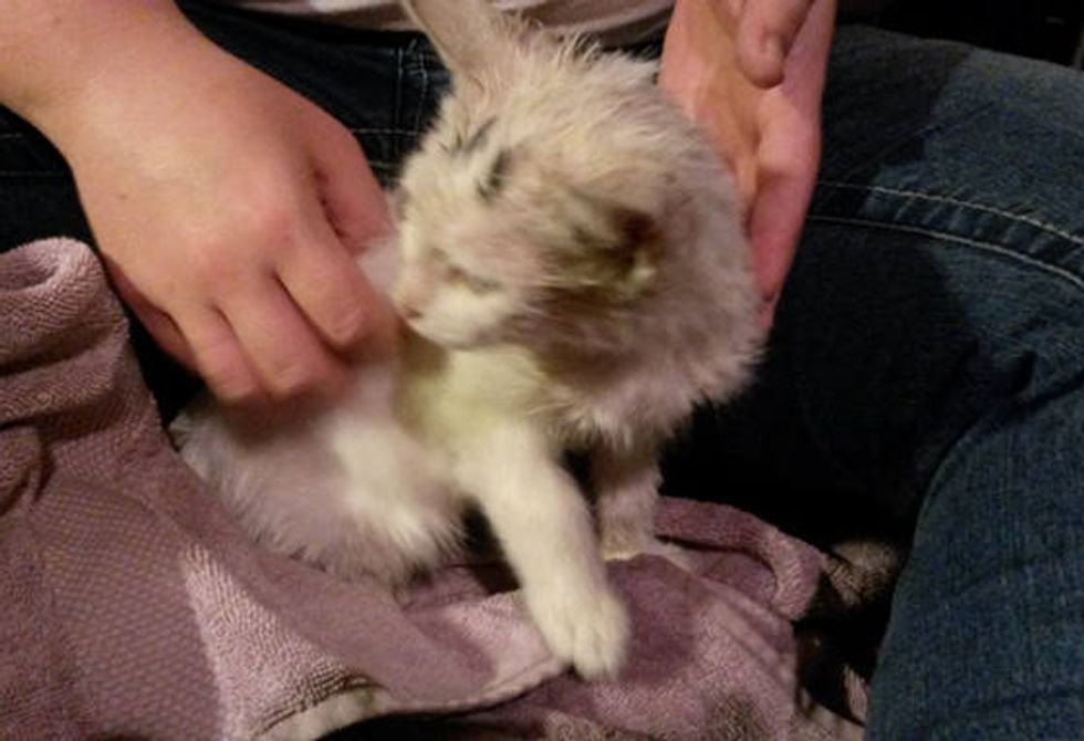 The man didn't just stop there. He scooped up the little kitty, gave her a flea bath, litter trained her, set up appointments for shots, got her spayed and gave her a forever home. "In the first day she ate half a box of dry cat food and 3 cans of wet food. She pooped a lot that night... The next day she ate 2 cans of wet and was a lot more relaxed. When I found her in the granite yard, she was trying to eat a rock."