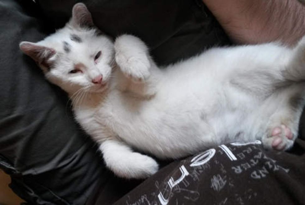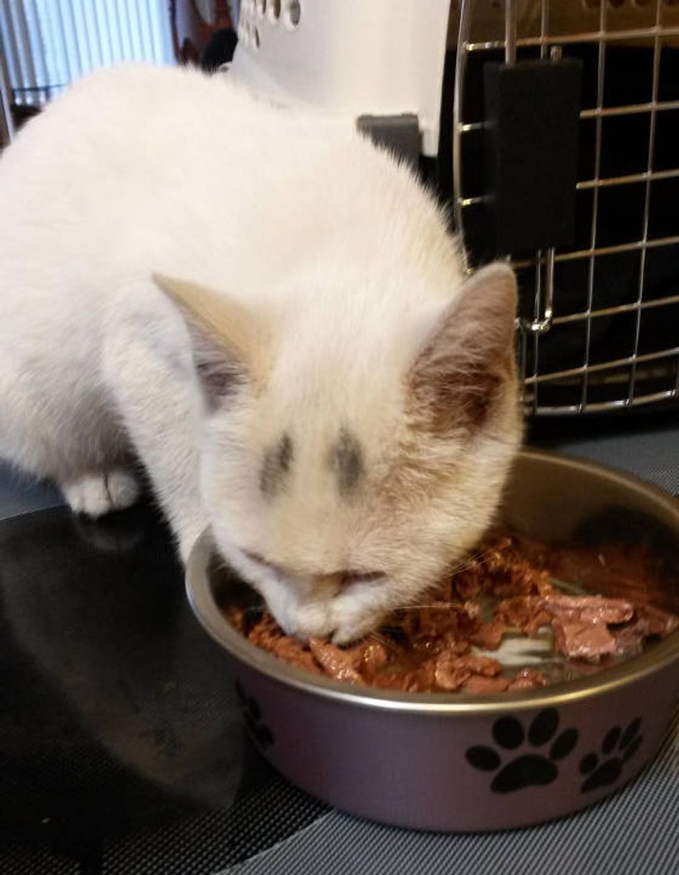 "Her dual colored eyes were really enchanting. Only with food in her belly did she perk up enough to show her face."