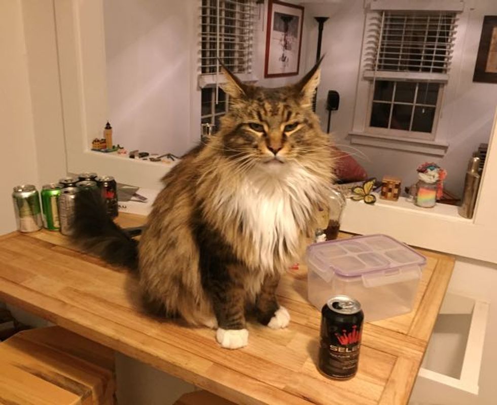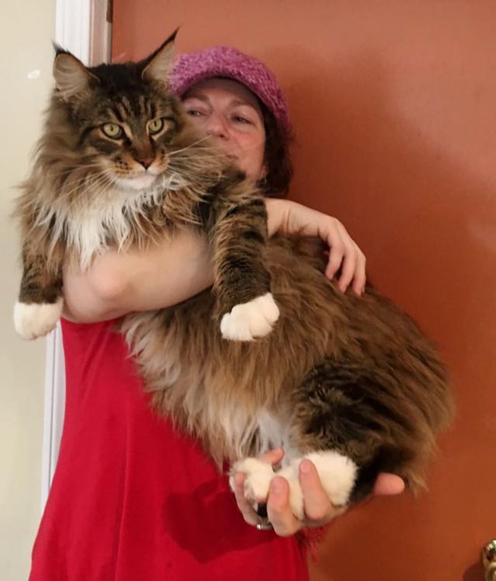 Meet Blue! He's a 23-pound Maine Coon cat who loves people. When his human works at night, he knocks on his neighbor's door and invites himself in for the night.