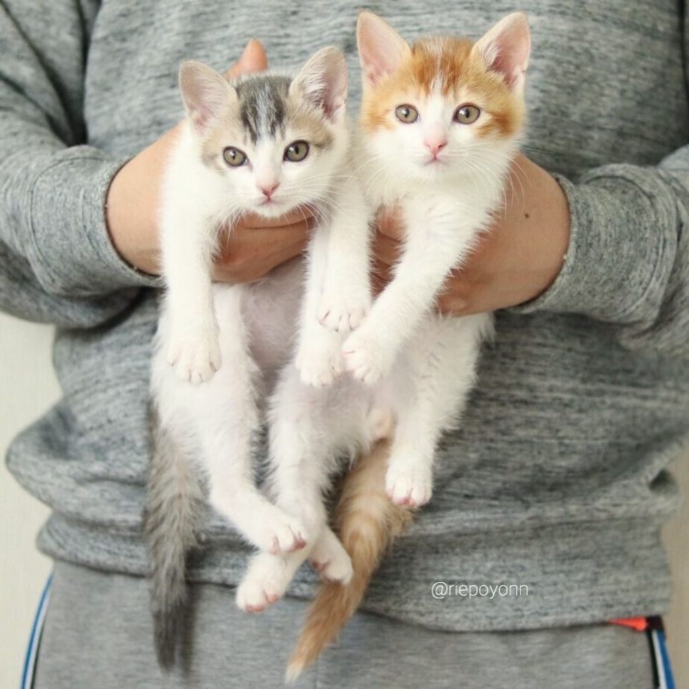 This brother and sister duo came to their new home after they were rescued from a shelter at two months old. Once they settled in, they were introduced to the 3-year-old feline resident, Sora.