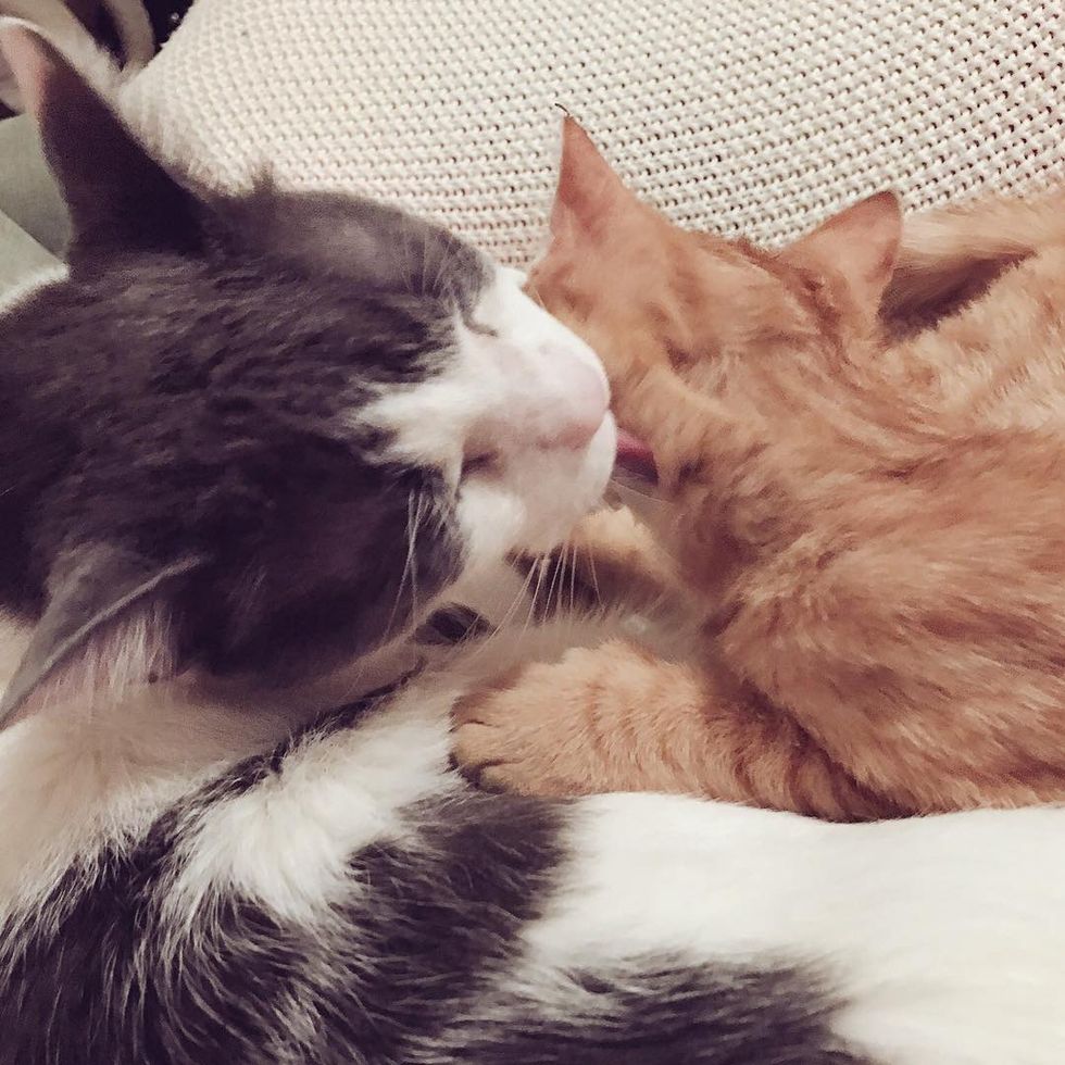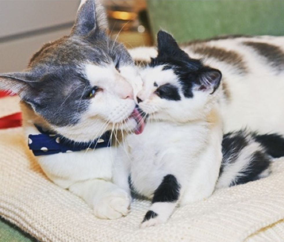 Charlie insisted to meet the kittens. His presence instantly gave them a sense of comfort, almost fatherly like. He started grooming them, caring for them and reassuring them that everything will be alright.