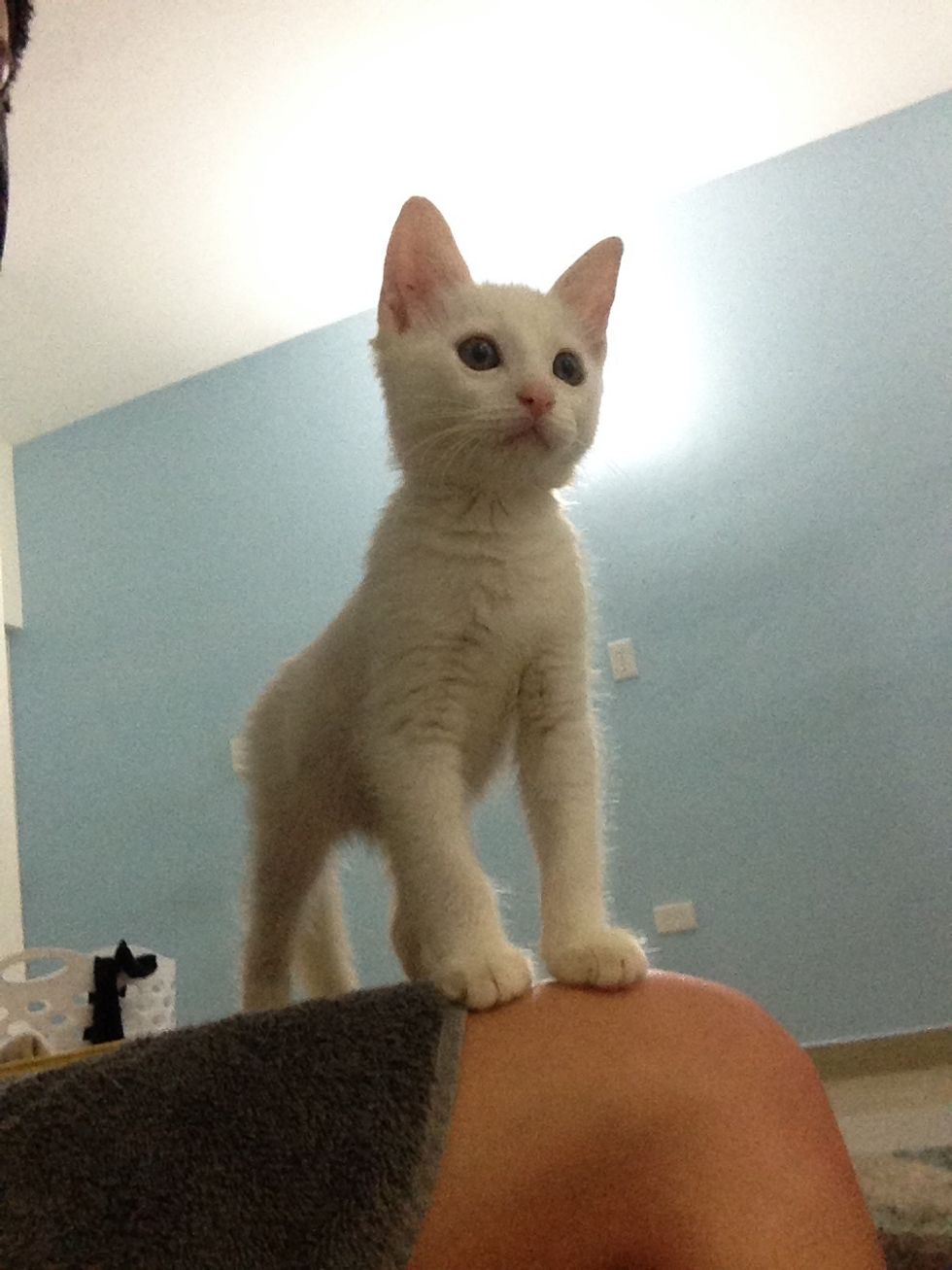 "He's amazing and a fiesty little fellow. His siblings (Beans and Gilligan. A 9 month old Persian and an 8 month old Boxer) love him and his shenanigans! He doesn't back down from them one bit."
