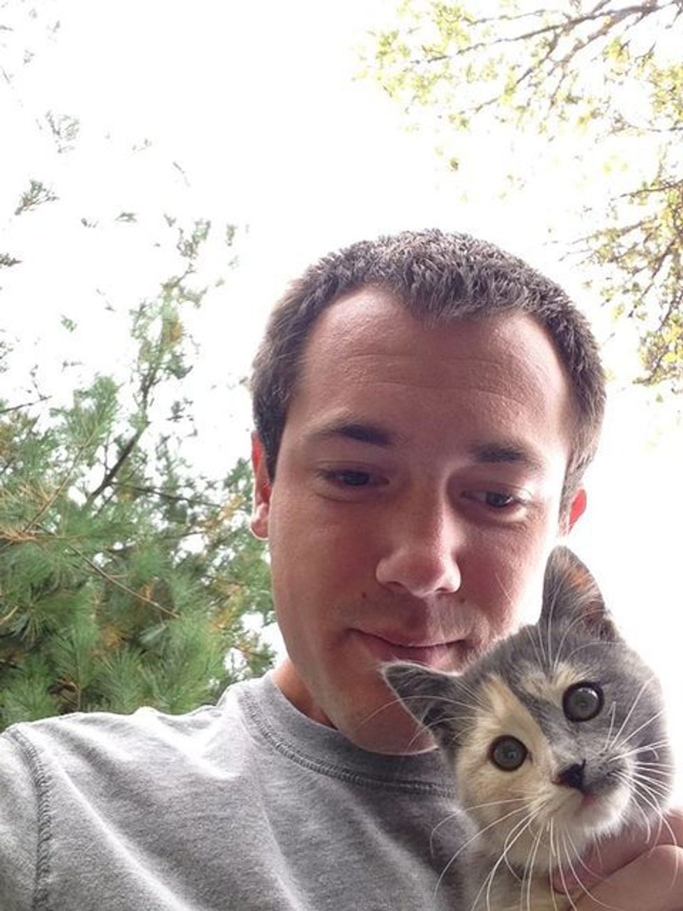 He had seen a stray mother cat in the area, so he quickly knew this adorable kitten was probably one of her babies that had wandered off.