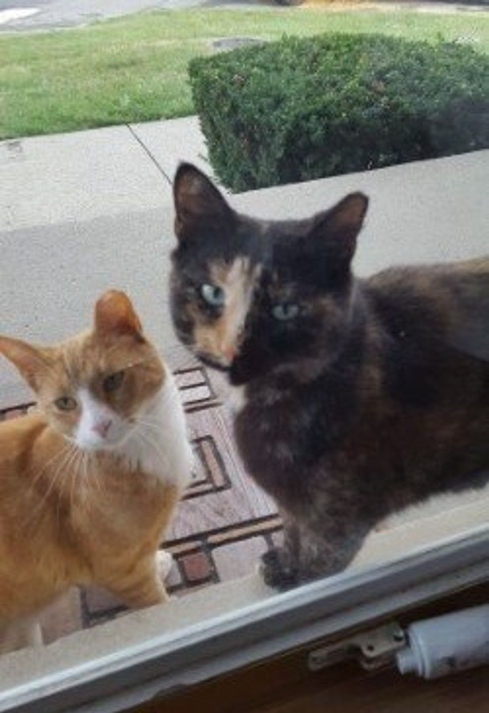 The tortie cat showed up a year and a half ago, and they have been caring for her since.