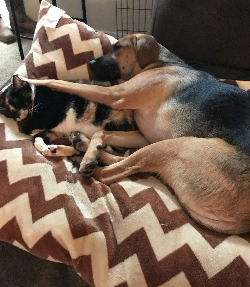 Six months after he found Barb, he brought home a little pup named Rupert. Barb took him under her wing, and the two became inseparable friends.