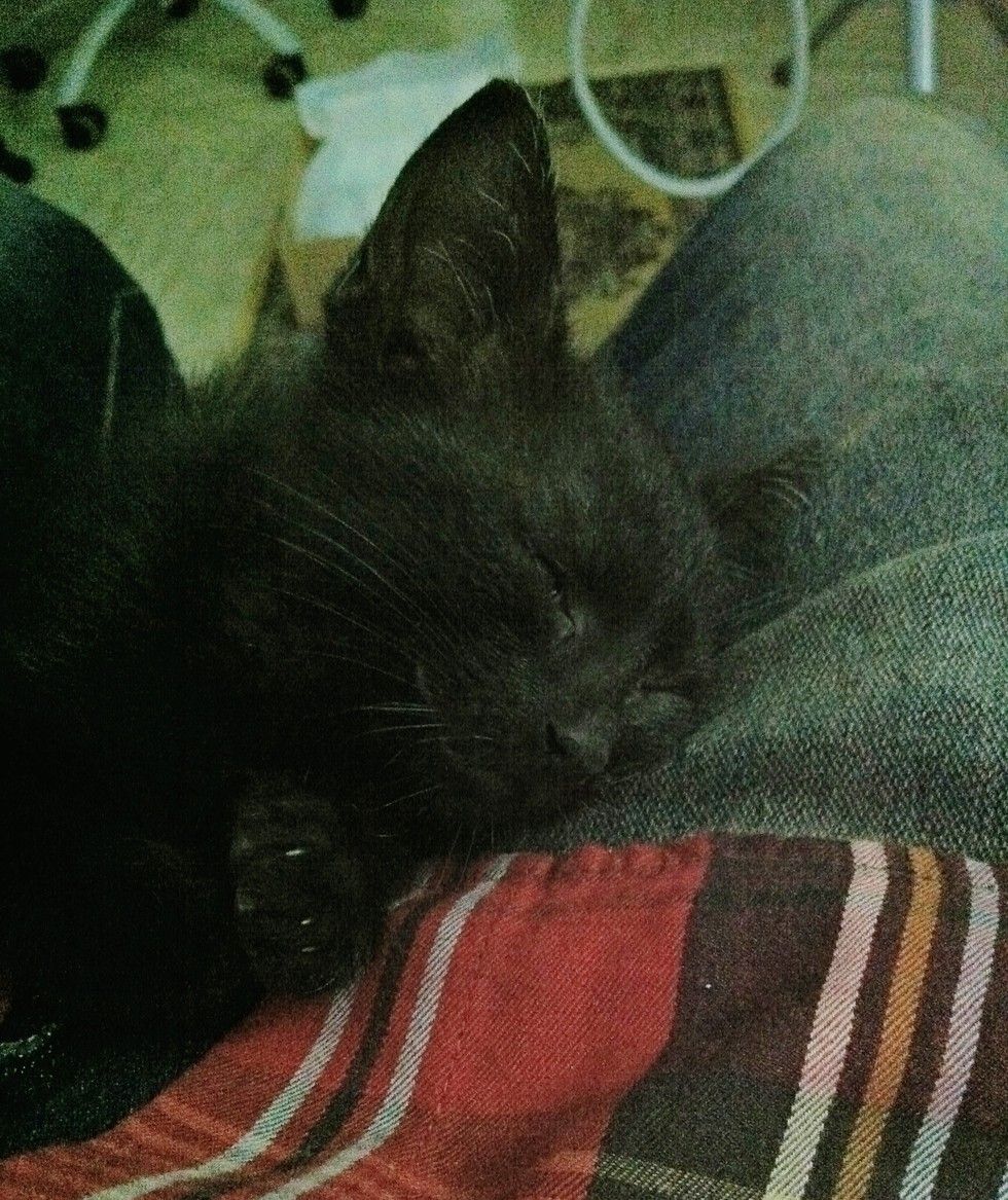 He scooped up the kitten and placed him on his shoulder, it was then Nemo finally calmed down and even started purring. A few snuggles gave him the comfort that a cat mother would.