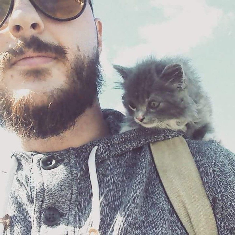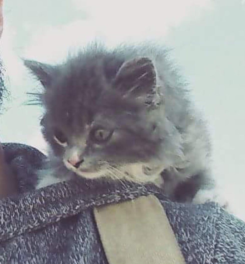 This man found a little feral kitten at the barn who desperately needed help. "I actually