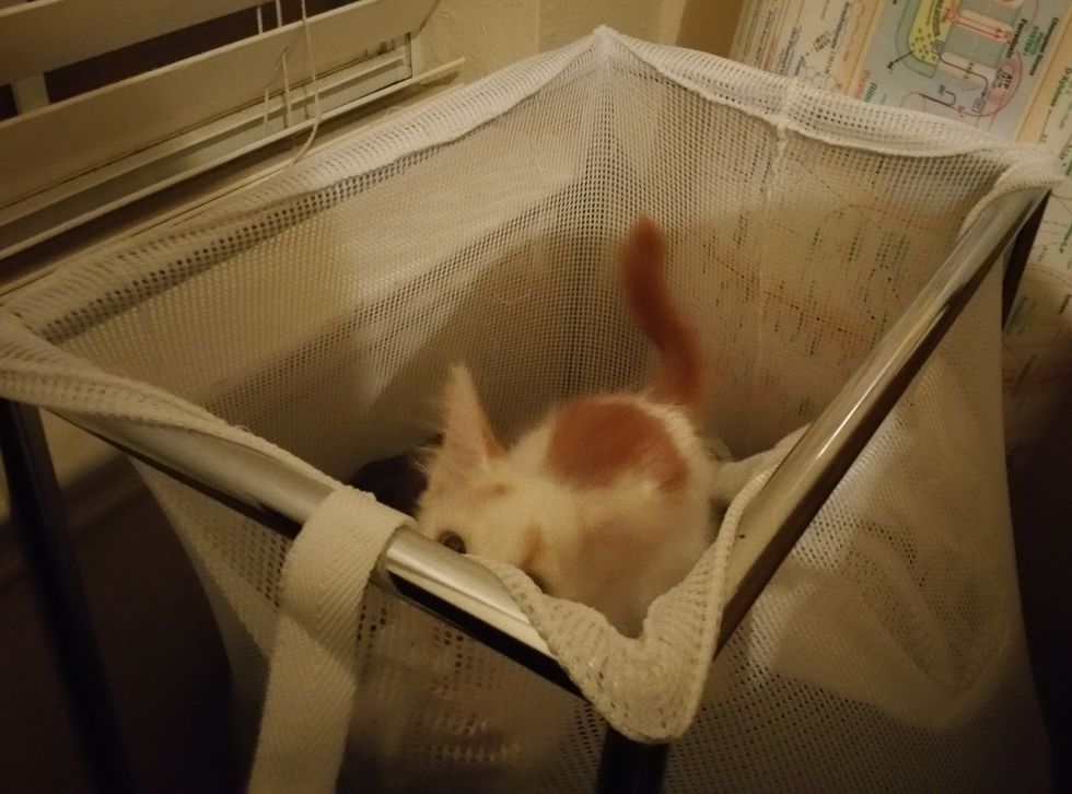 When the man needed to get to work, but the kitten insisted to stay in his pocket, he grabbed a t-shirt and made a spot for him on his desk.