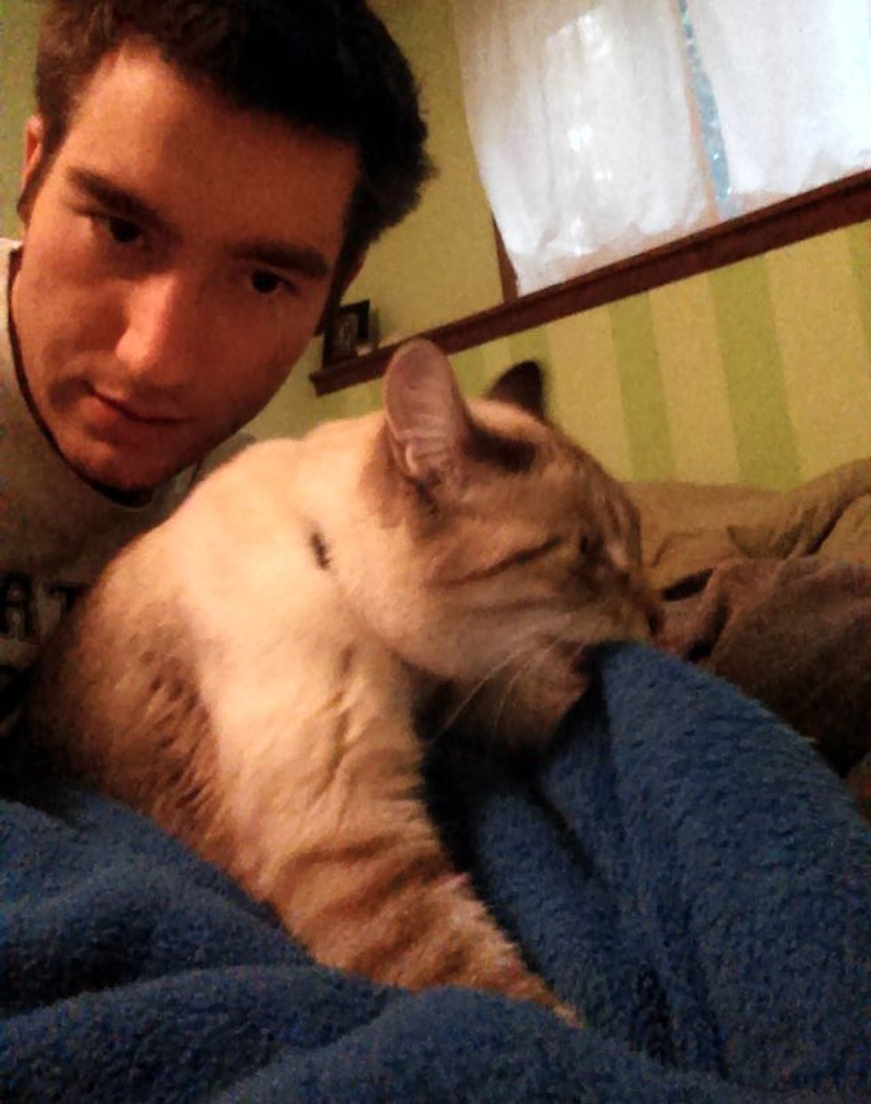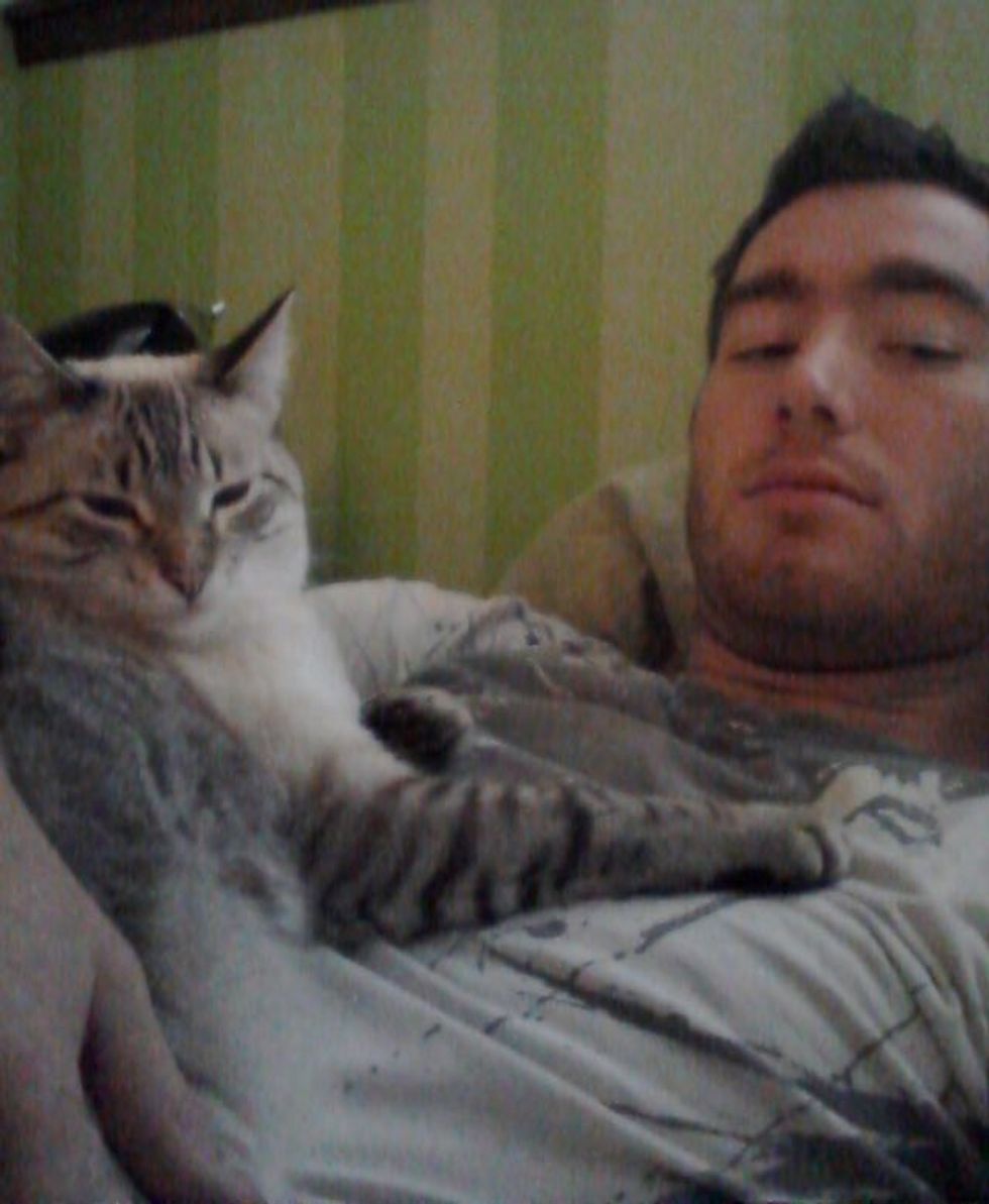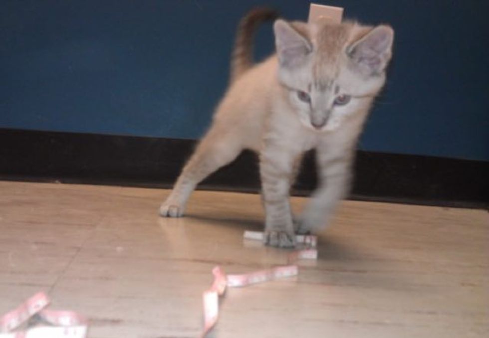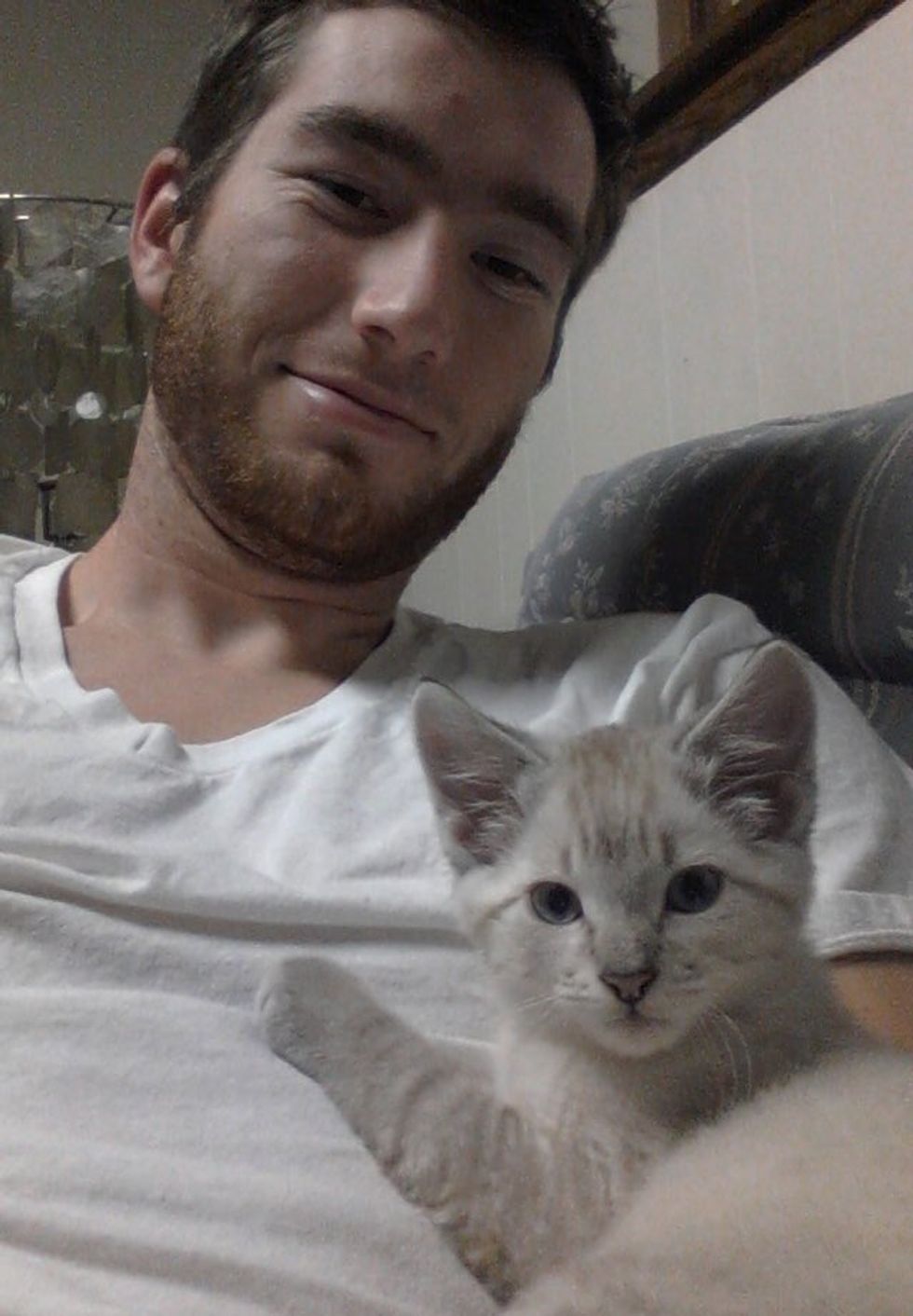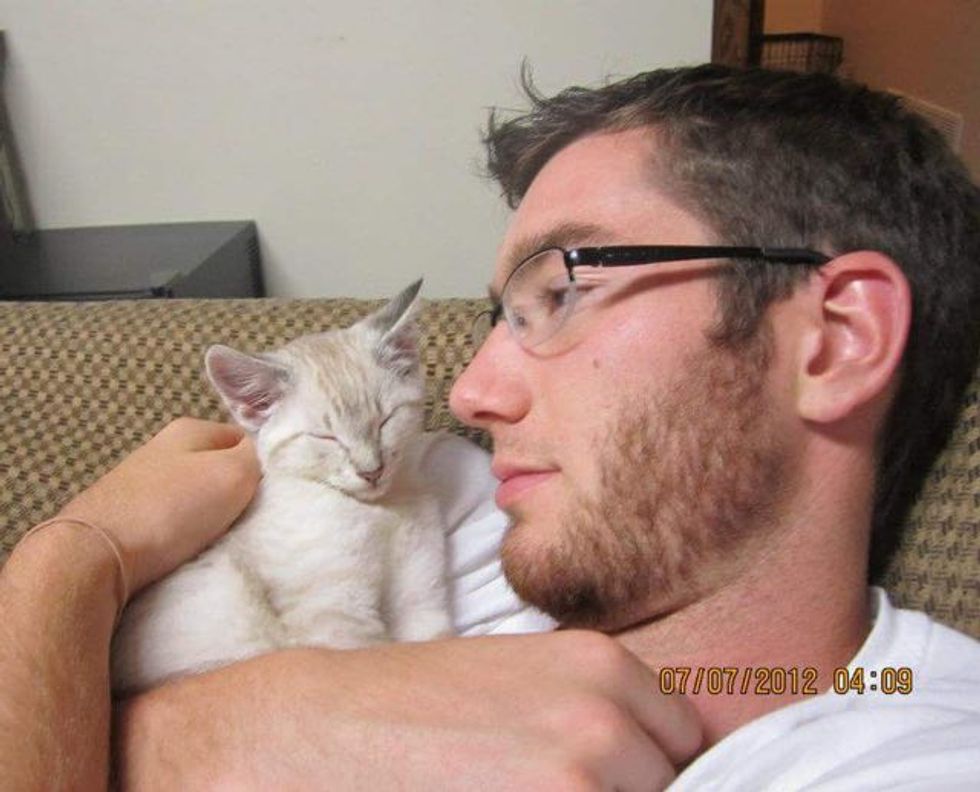 "My girlfriend was just visiting the humane society when she saw him. She told me I HAD to see this kitten. So of course, I went," Erik wrote via imgur. "We played with him for close to two hours, then he got a little sleepy." That's when he knew he couldn't let the kitty go.