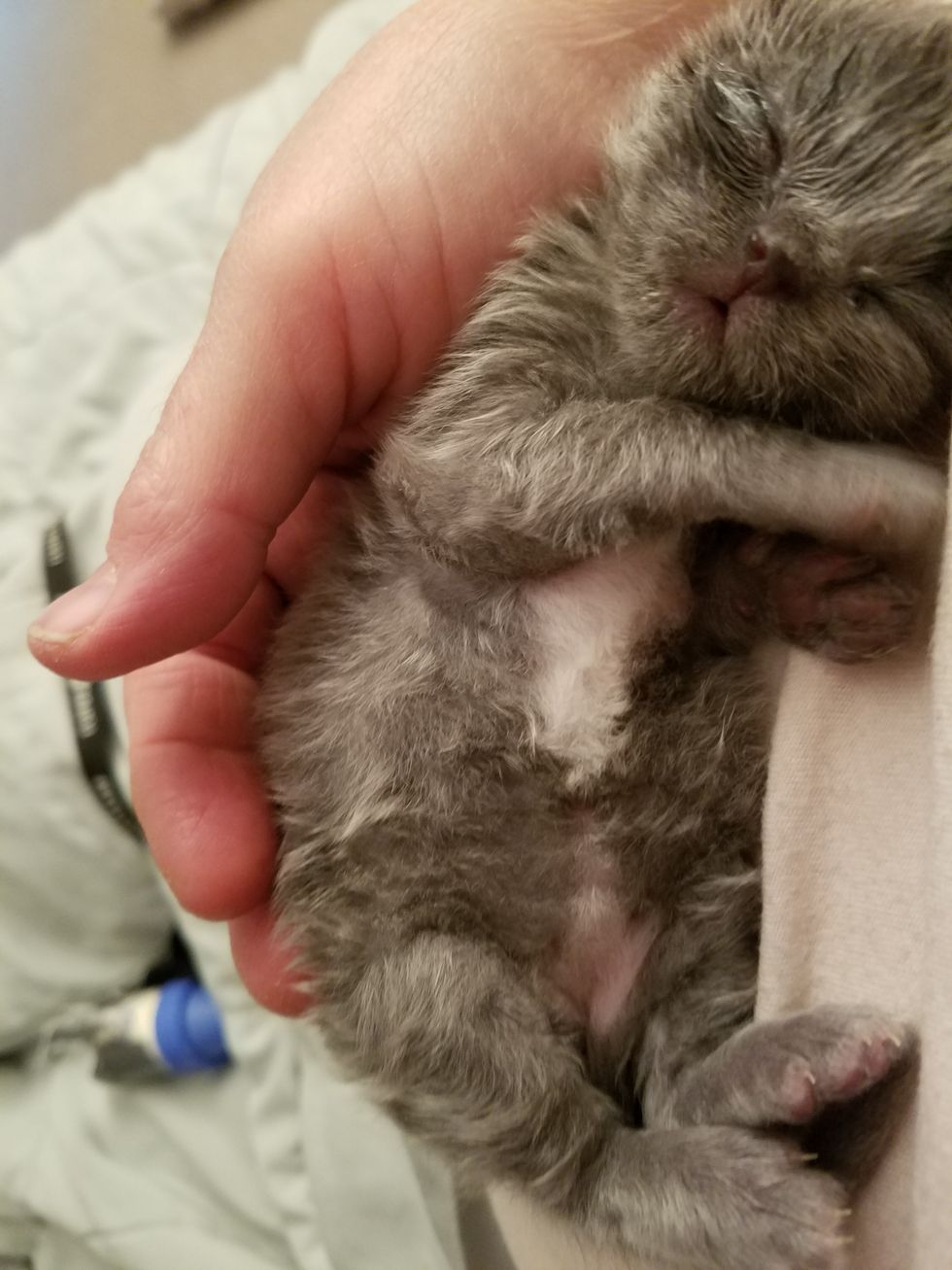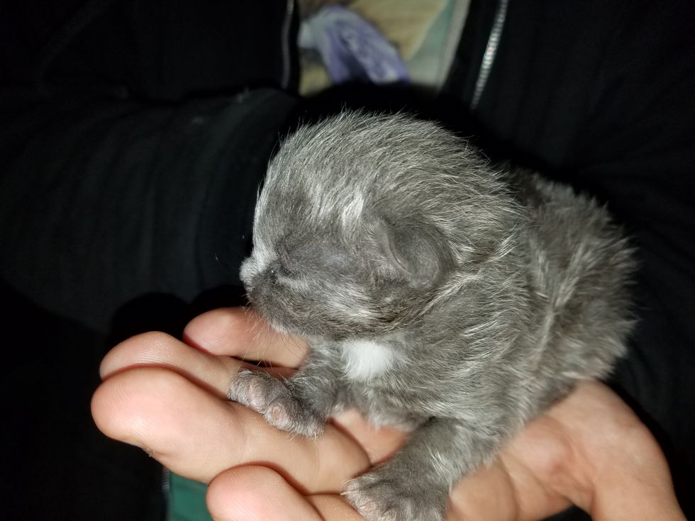 There's a feral cat colony in their small town. The family later found out that the tiny fur baby was born in a garage about a block from their home along with another kitten.