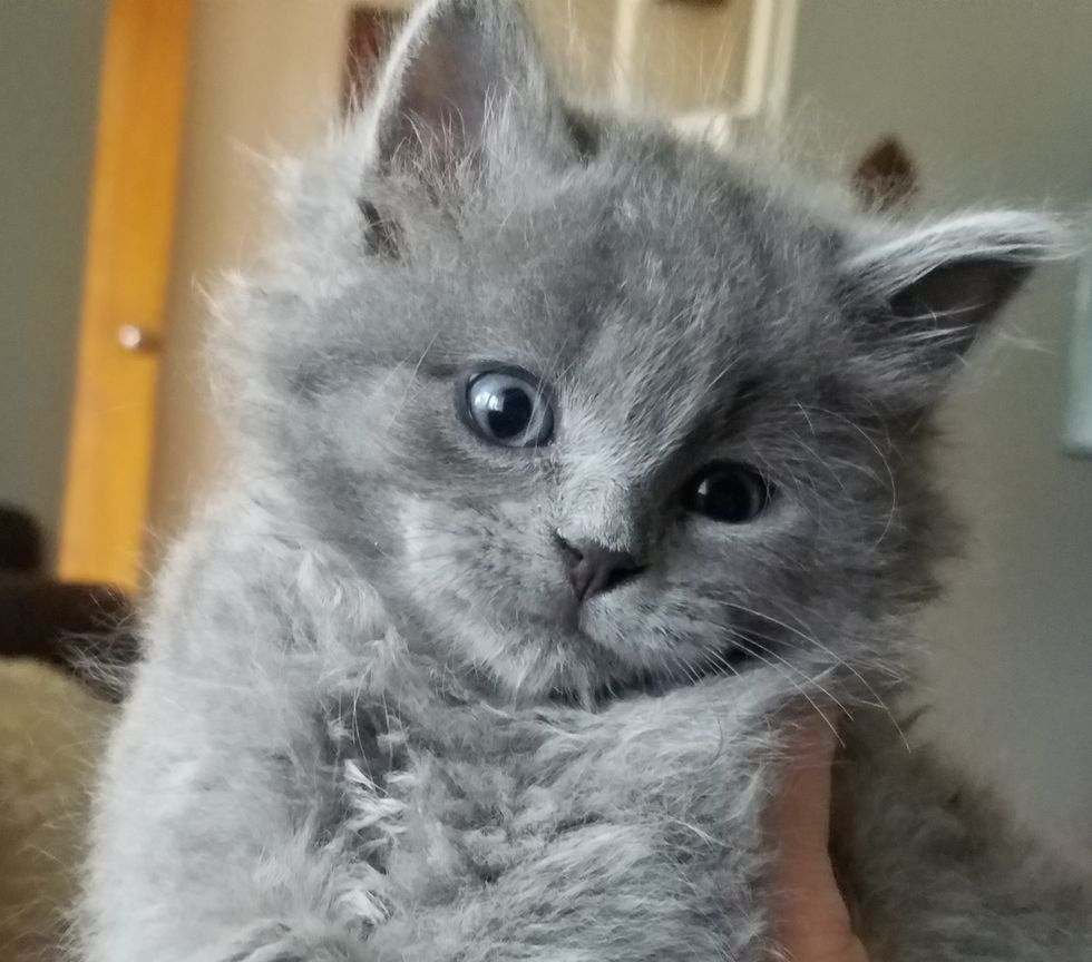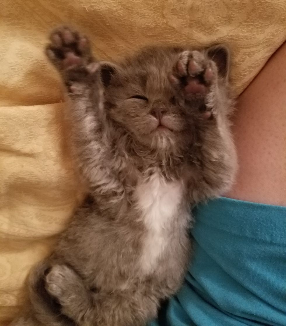 He was a tiny palm-sized kitten when they found him, and now five months later, he's blossomed into a gorgeous, fluffy cat, constantly showering his humans with love and cuddles.