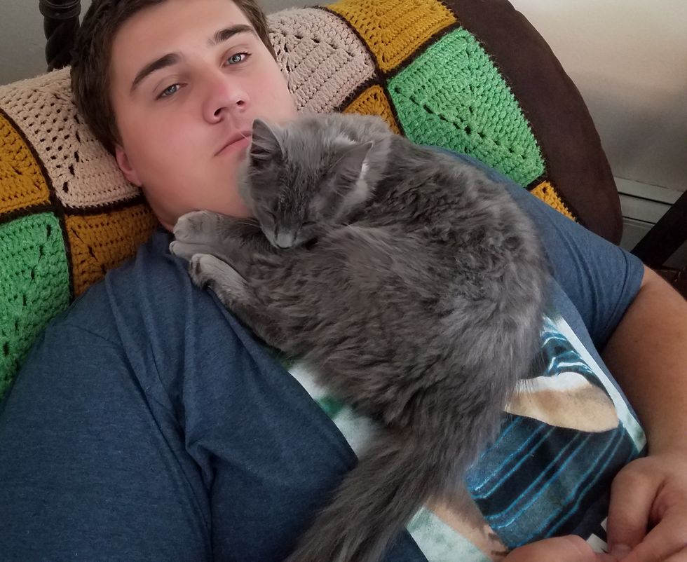 Whisker cuddled up to his human brother for an afternoon snooze.