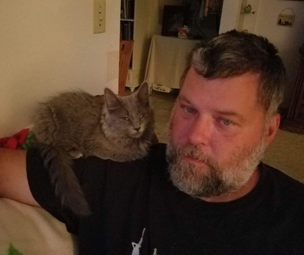 One of his favorite things is to sit on the shoulder of his rescuer, now forever human dad, to keep him company.