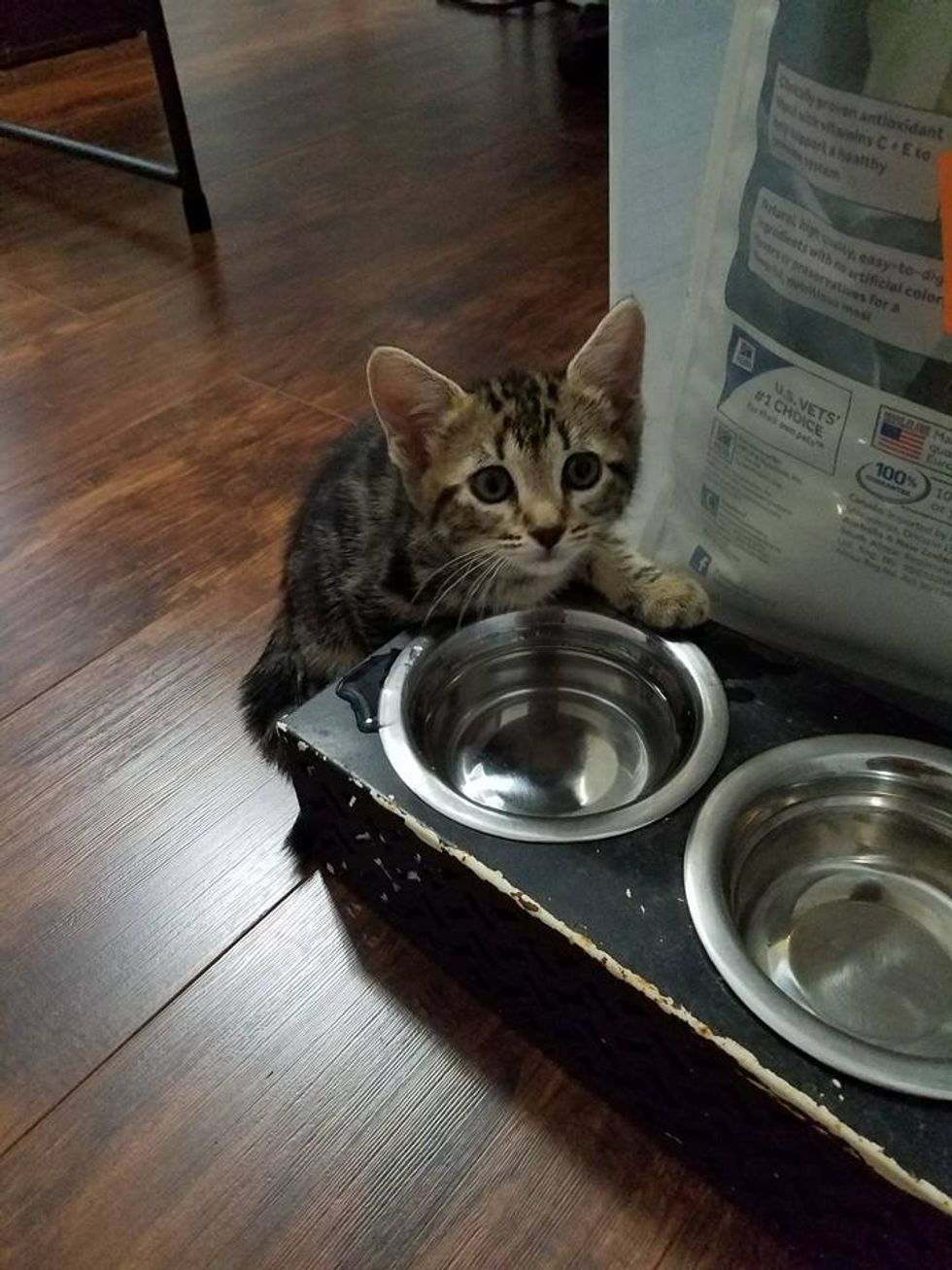 When they saw the little tabby kitten in need of a home, they welcomed him right in with open arms.