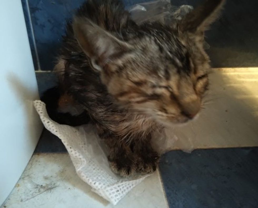 It was pouring rain when a man spotted a tiny kitten running in the streets. He couldn't leave the kitty there so got out of his car and went to the rescue.