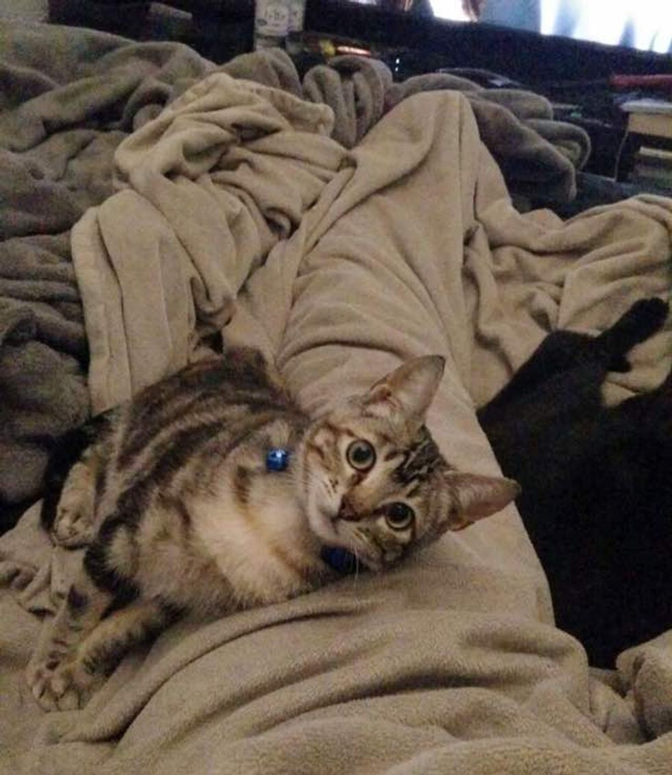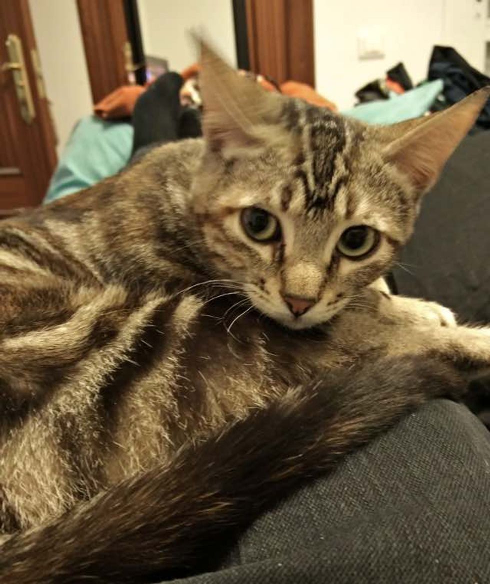 "Our original intent was to give her up to a friend for adoption, however my wife and I got attached and decided to keep her. Just going to be an expensive move when we go back to the states," Andrew told Love Meow.
