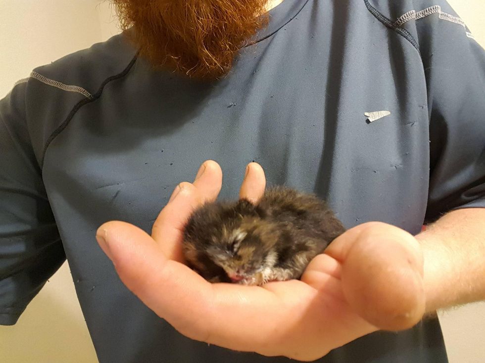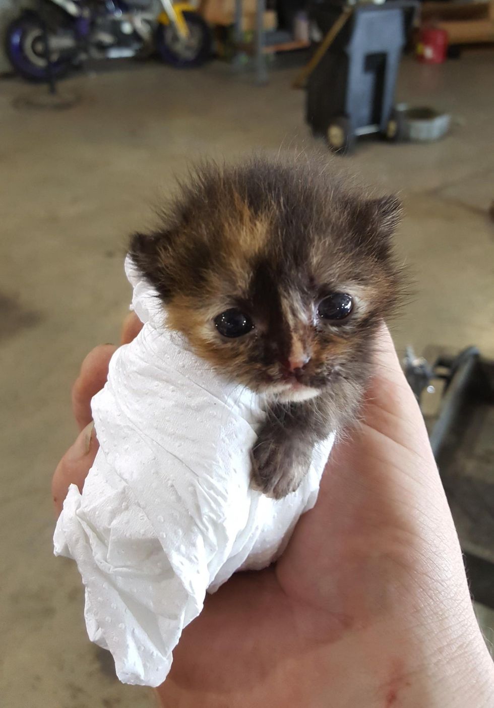 It was a Saturday at an automative repair shop in Houston, Kyle was working on a car when suddenly he discovered the tiniest little furry creature he had ever seen.