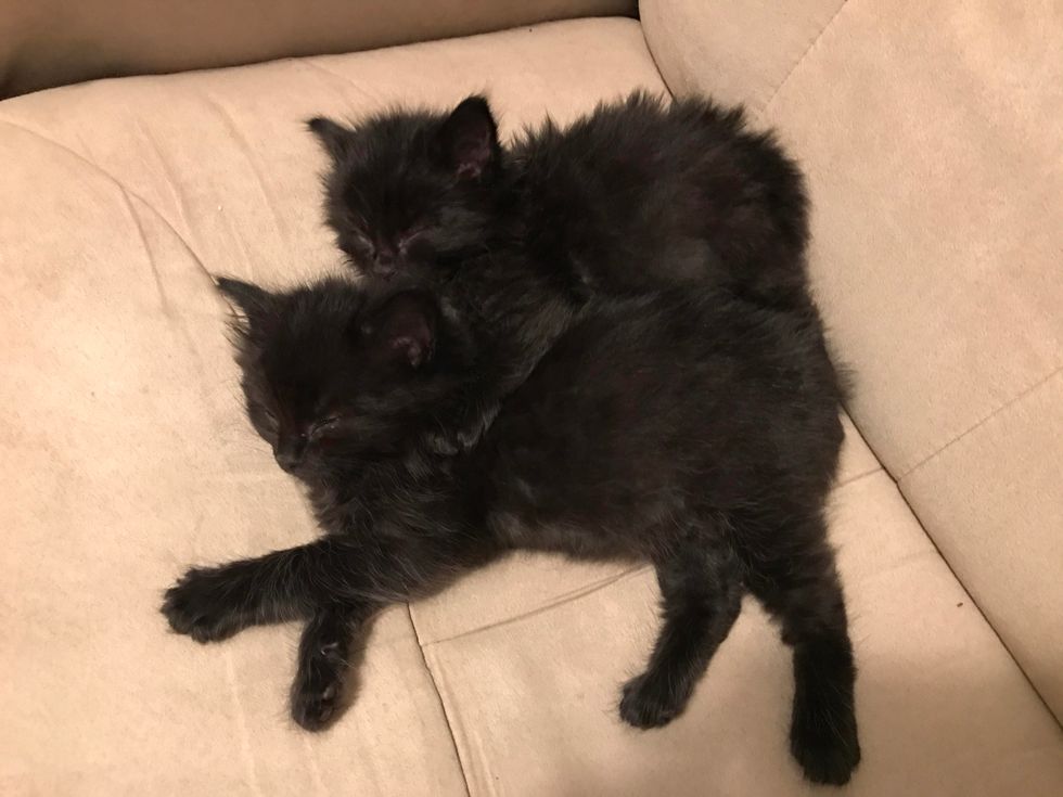 "They slept for hours, looking so precious and content. You could barely tell where one kitten stopped and the other started, they were cuddling and keeping each other warm."