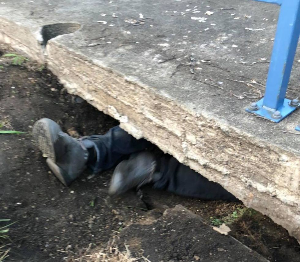 He lay on his back, shimmied his way into the hole head first. He had barely enough room to inch forward as his tummy rubbed against the concrete. After carefully maneuvering his body into the tight space, he was able to reach the kittens and handed them over to the other volunteers.