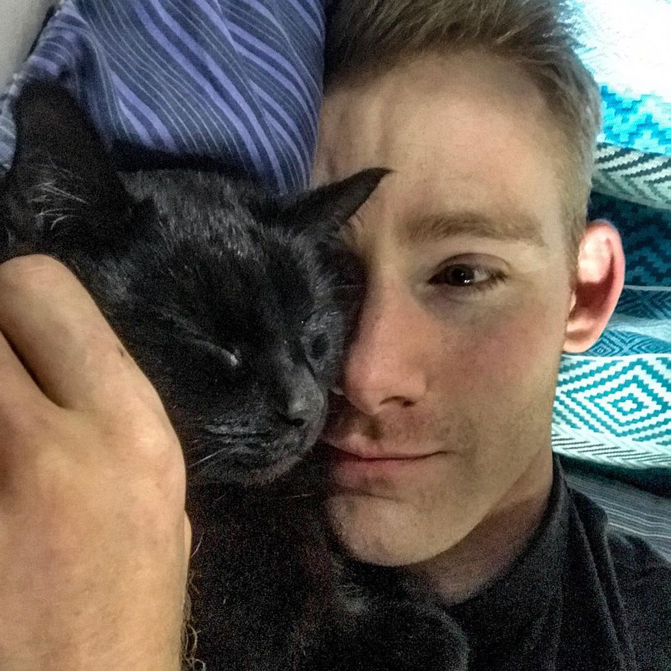 Willow was two years old when Richard met her through his ex-girlfriend. She was adopted from a shelter in Hobart, Tasmania. Soon the kitty took a liking to Richard and was always there to keep him company, following him like his shadow.