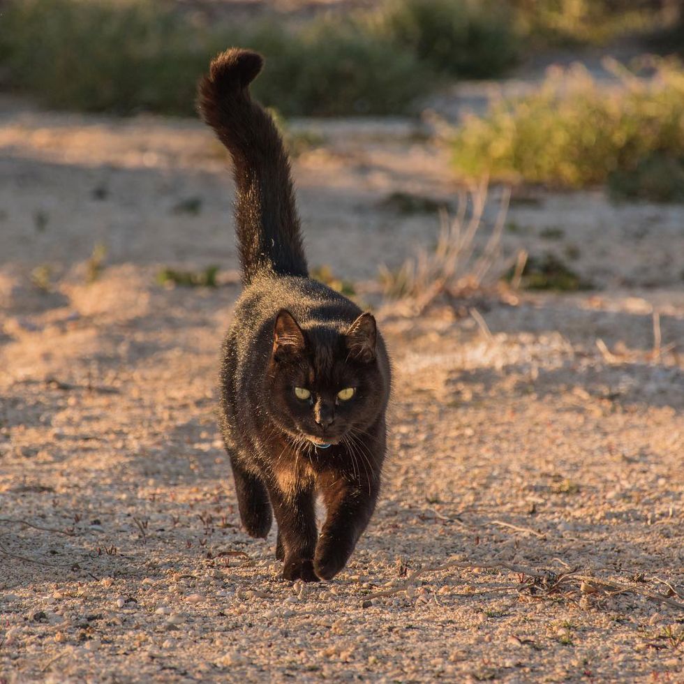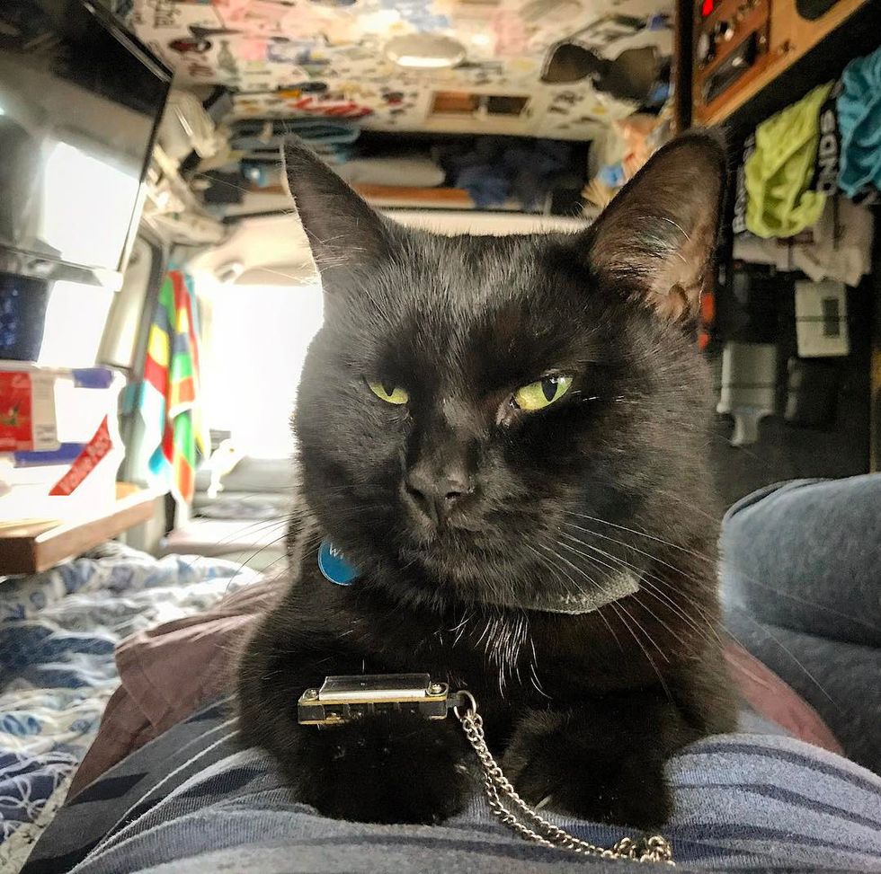 "The little black adventure cat... really took a chance when she rescued me. The little cat who has made my van into a home and the whole of Australia her backyard."