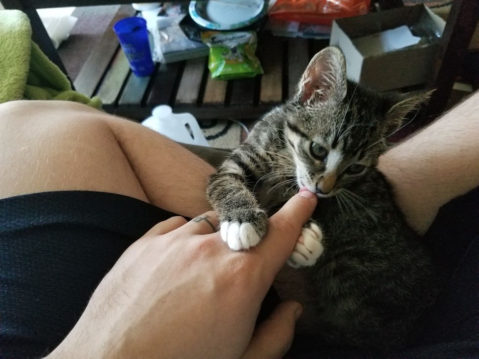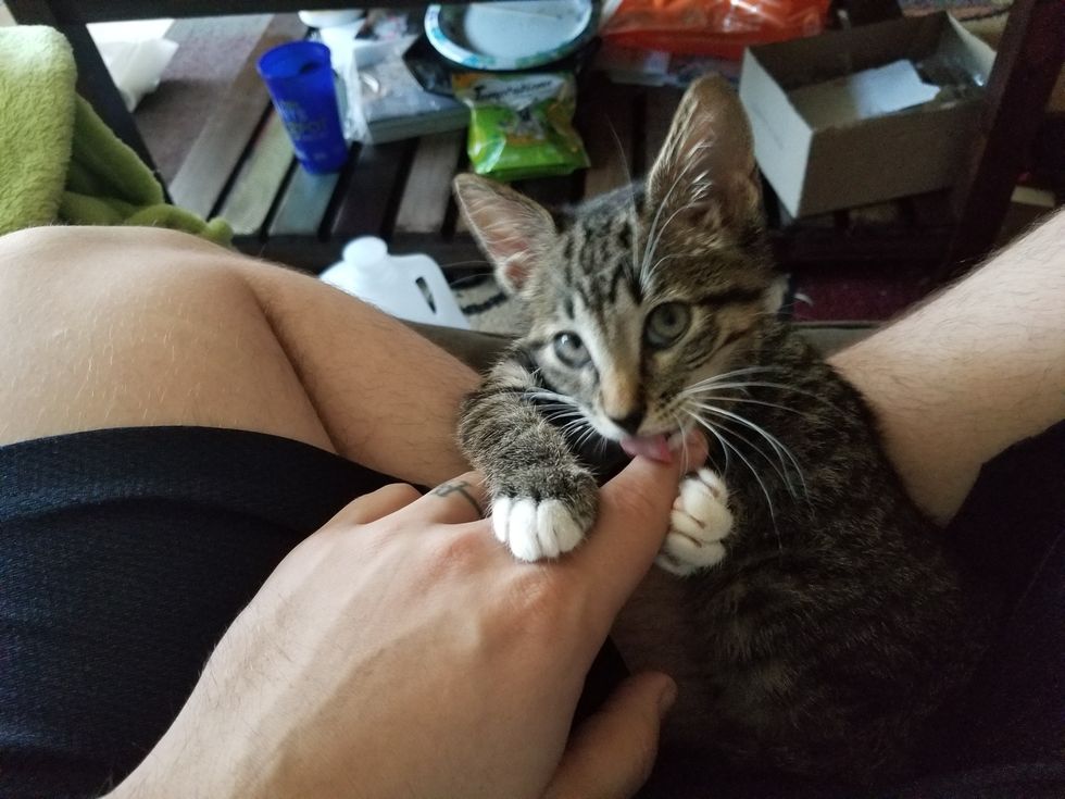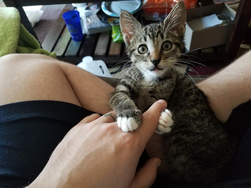 A man, who was never a fan of cats and had always been a dog person, met a little kitten from the shelter. In less than one day, the tabby kitty crept his way into his heart and claimed him as his forever human.