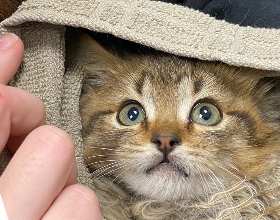Against all odds, the kitten made it through the incredible ordeal. She was freezing and shaking, but eventually calmed down knowing she was in good hands.