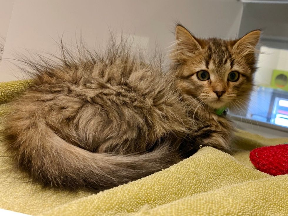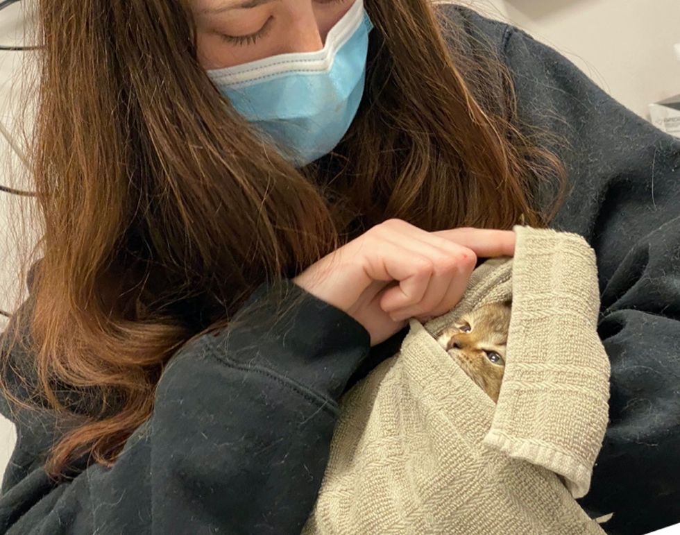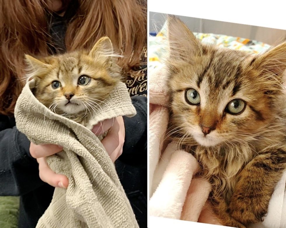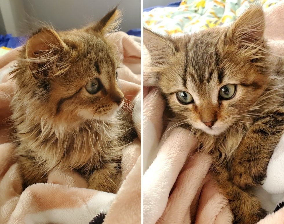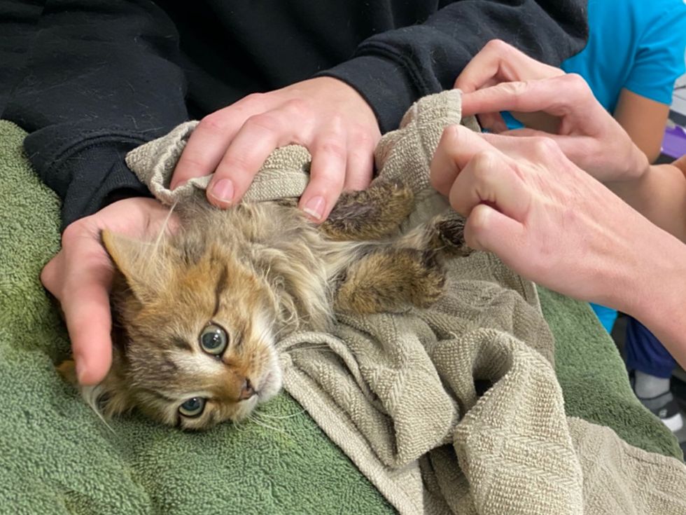 The kitten was glad to receive the much-needed attention from the veterinary staff, and was happy to be warm and have food in her belly.