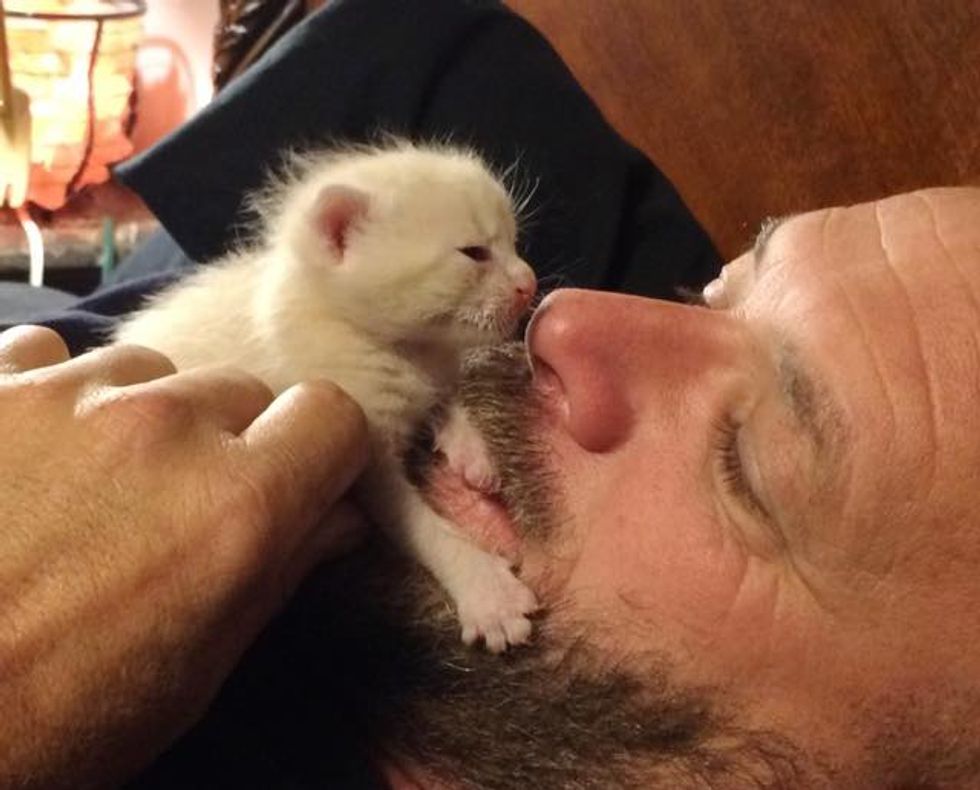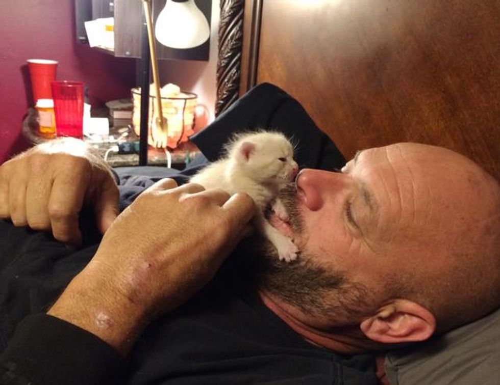 This kind man found a tiny kitten who needed a lot of motherly love. He took her home and became her new 'mom'!