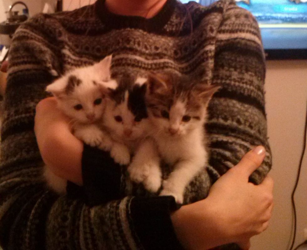 They got the kittens in a warm room, but the three siblings immediately took refuge.