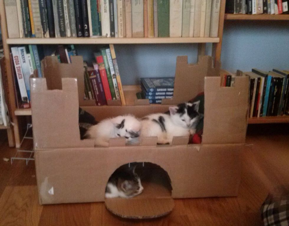 The trio do everything together - watch the animal channel in the comfort of their cat condo.