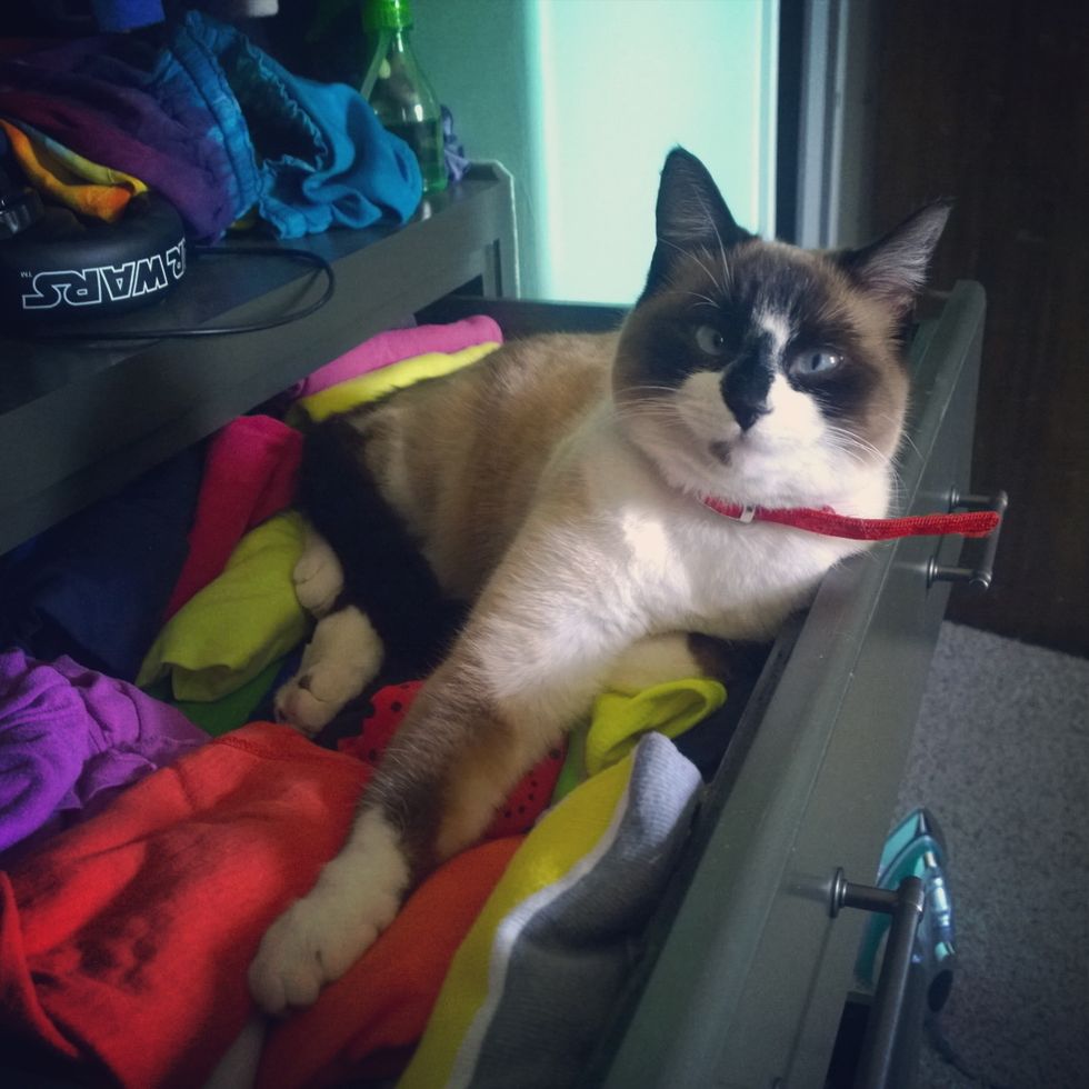 She managed to open the drawer and turned it into a bed.