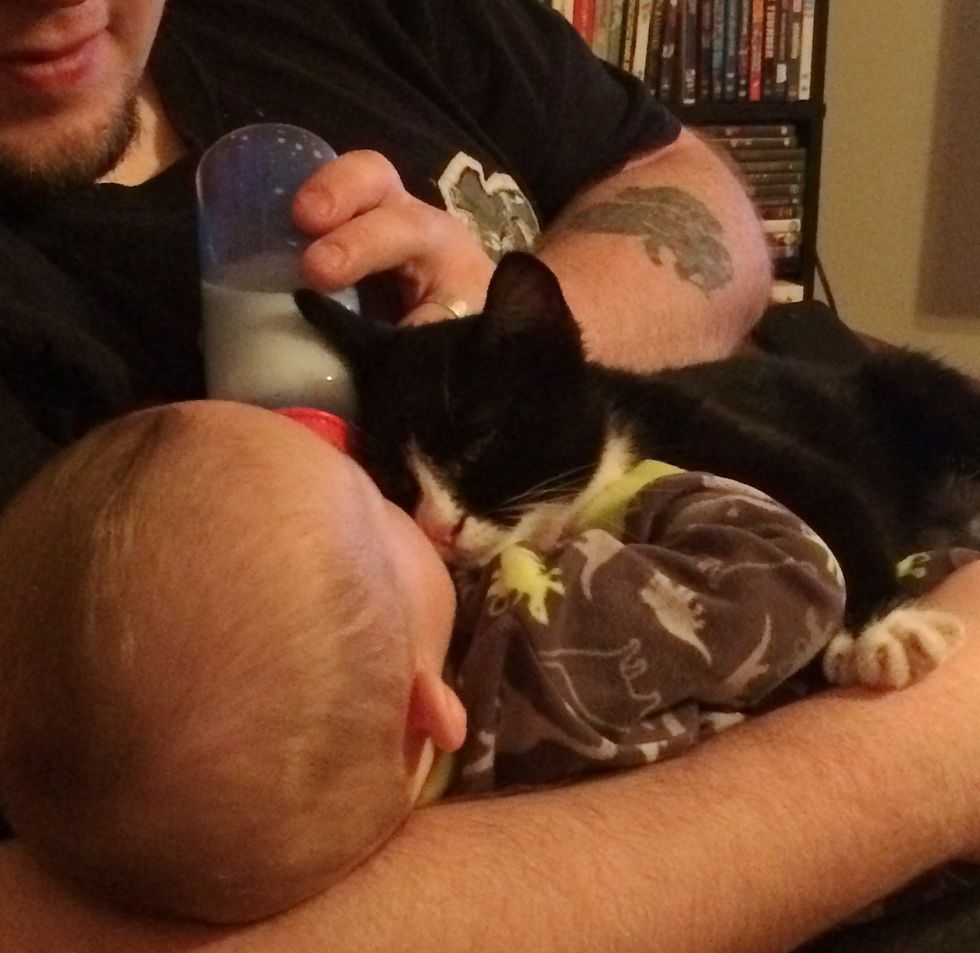 They gave the tuxedo a forever loving home, and now he is guarding and protecting their little boy for life!