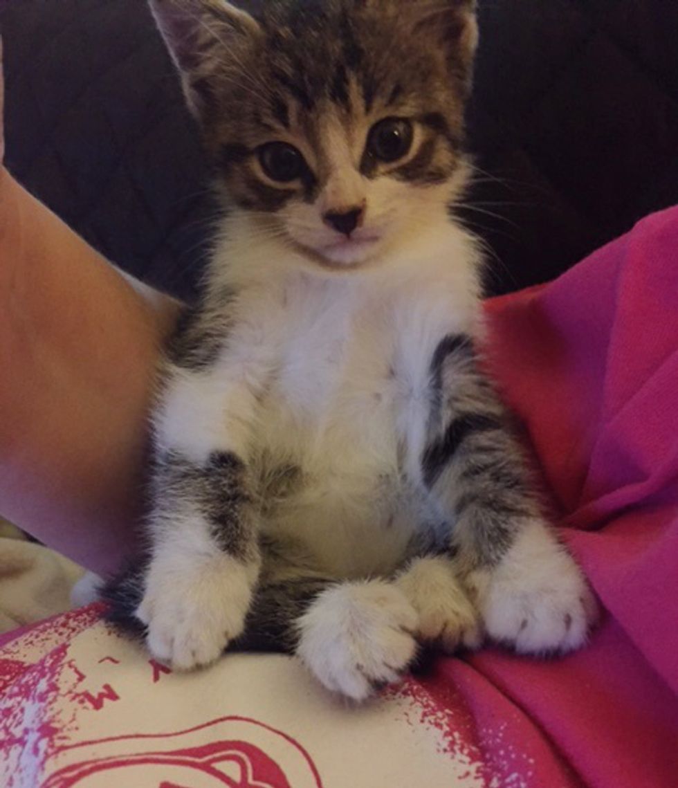 "He saw the kitten and at first thought he was dead. Then he realized that the noise was coming from him."