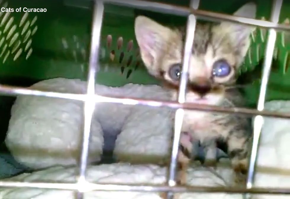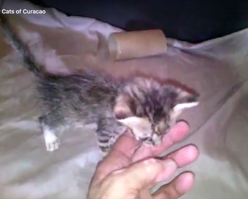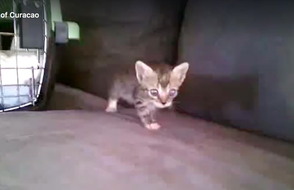 The tiny kitten was just four weeks old when she was found on the Island of Curacao. Passerby heard meowing from the distressed kitten but no one stepped up to help.
