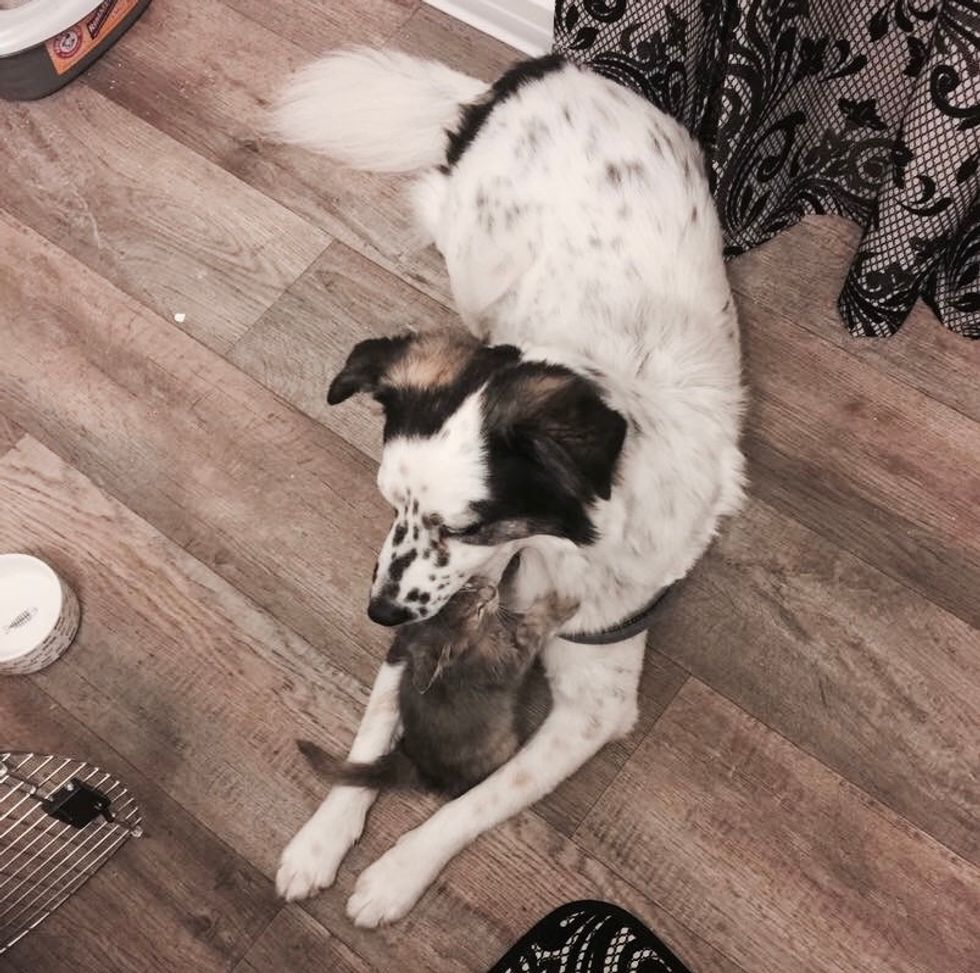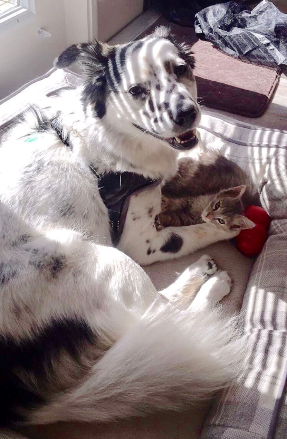 Not only did Dottie accept the little feline into their family, but also she started showering her with love and cuddles.