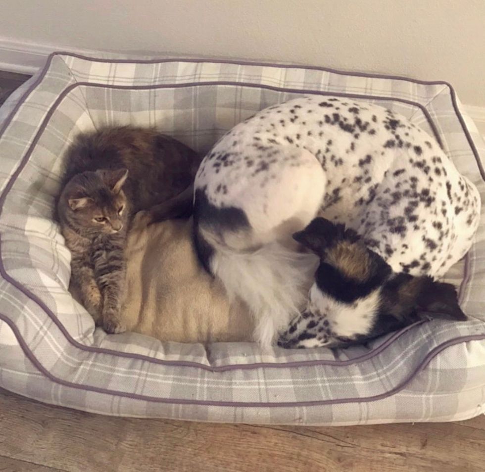 "They even share the dog bed. Dots turns into a Dalmatian when she gets groomed."
