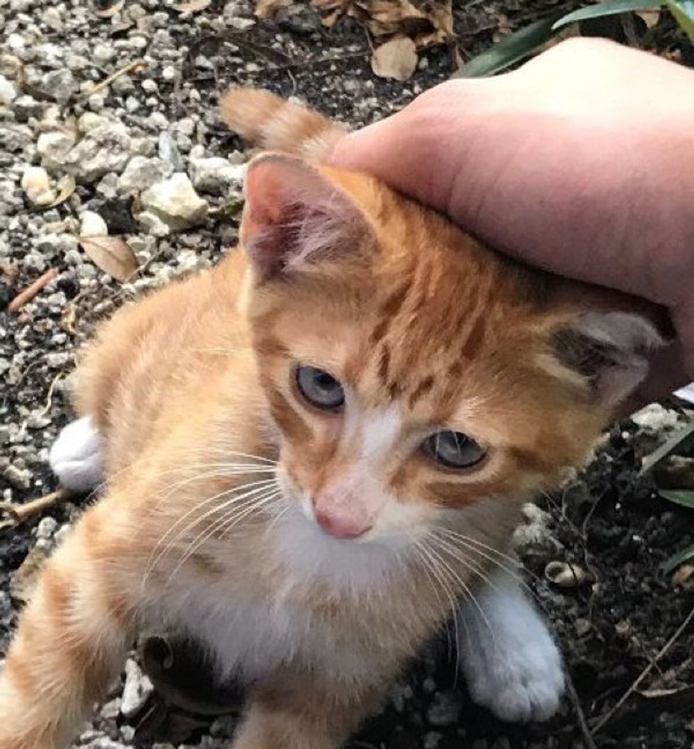 "The kitten hang around my husband's office. At first they noticed him and presumably his mother, but, shortly after only the kitten was left," imgur user Kushita told Love Meow.