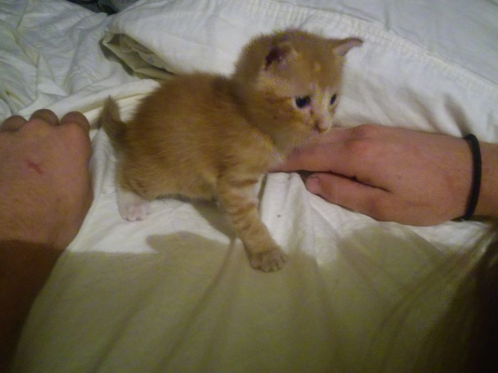 They looked for the mother but she never returned. The man slowly walked towards the kitten, hoping he wouldn't run away. The little feline was a bit shy but it was clear that he didn't want to be alone.