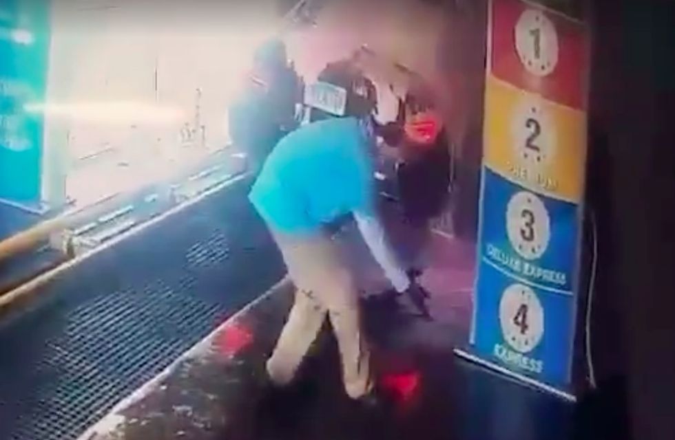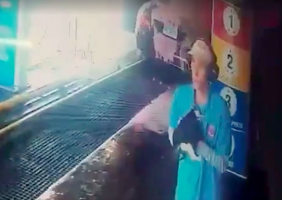 "He fell out of the bottom of the car. I had to go back on the security cameras and watched the footage to see that. It was the craziest thing."
