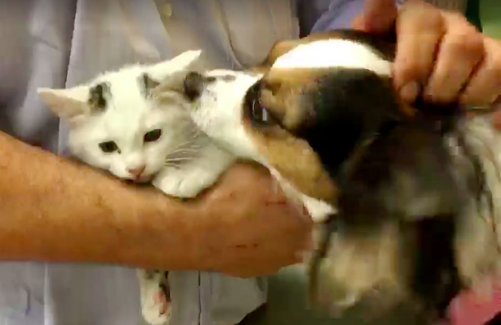 Suds getting a lot of love and TLC from Bitsy the dog.