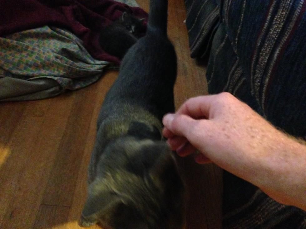 She rubbed all over his legs and purred up a storm as if she was saying to him, "Thank you."
