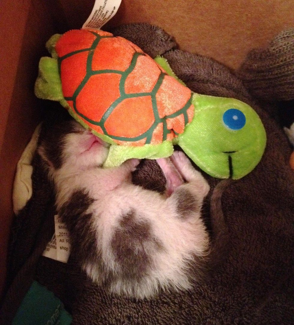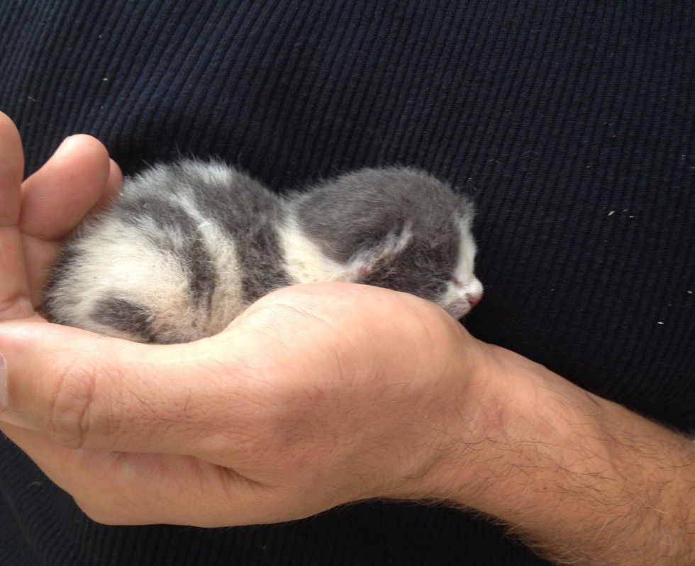 He tore up the rock wall to save the kitten. "She didn't open her eyes for 10 days. I woke up/came home every 2.5 hrs to bottle feed and warm her bed."